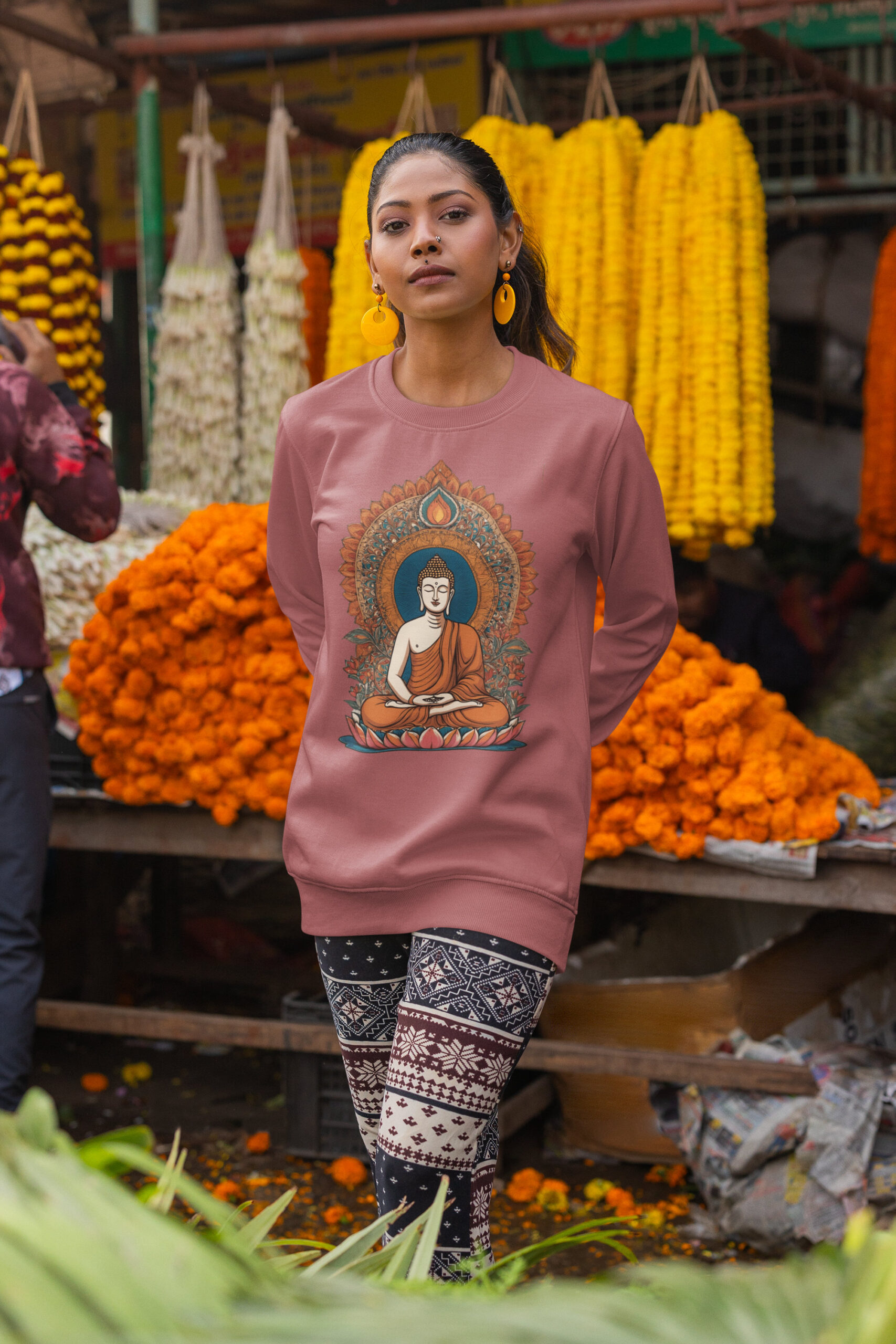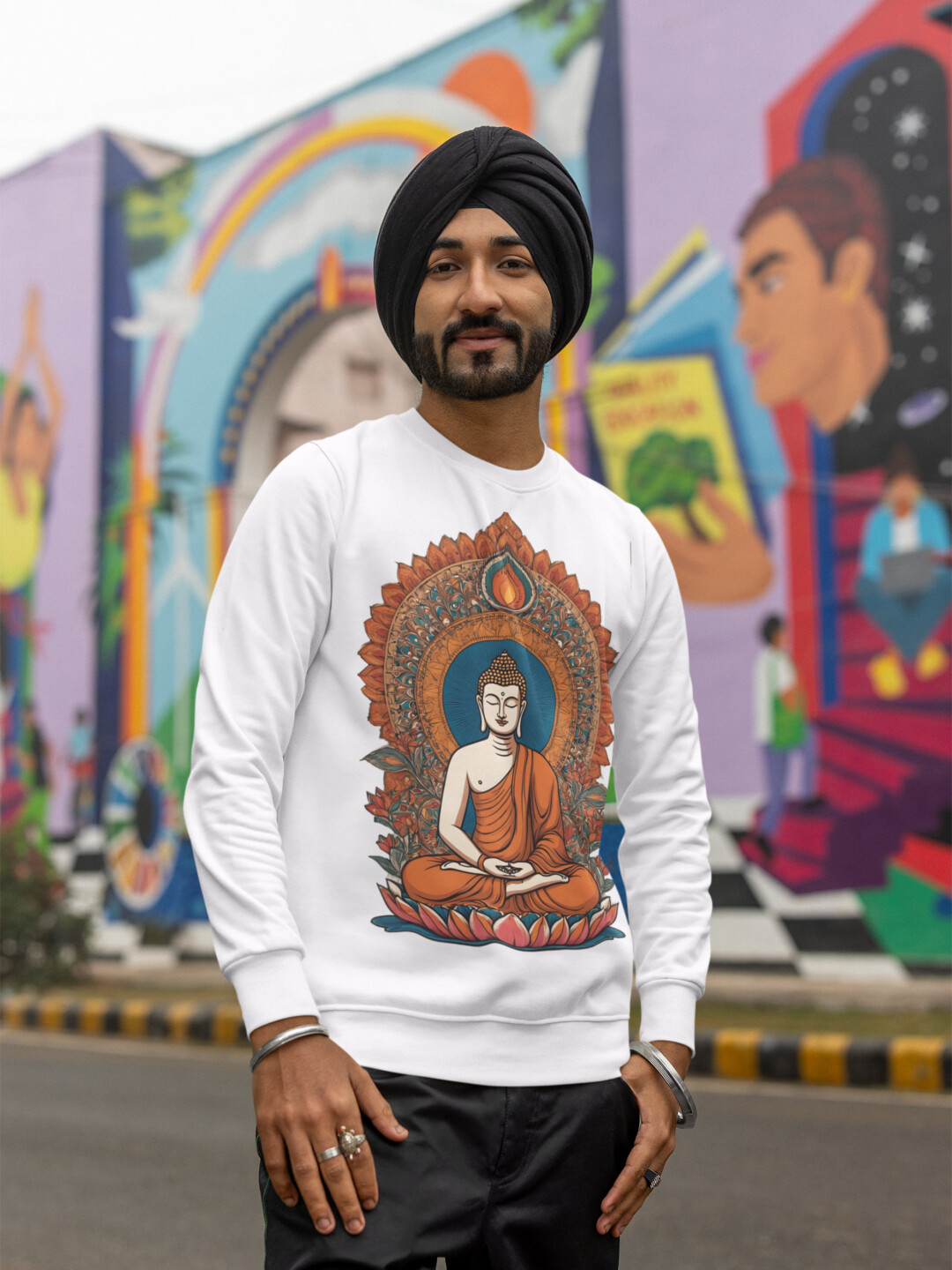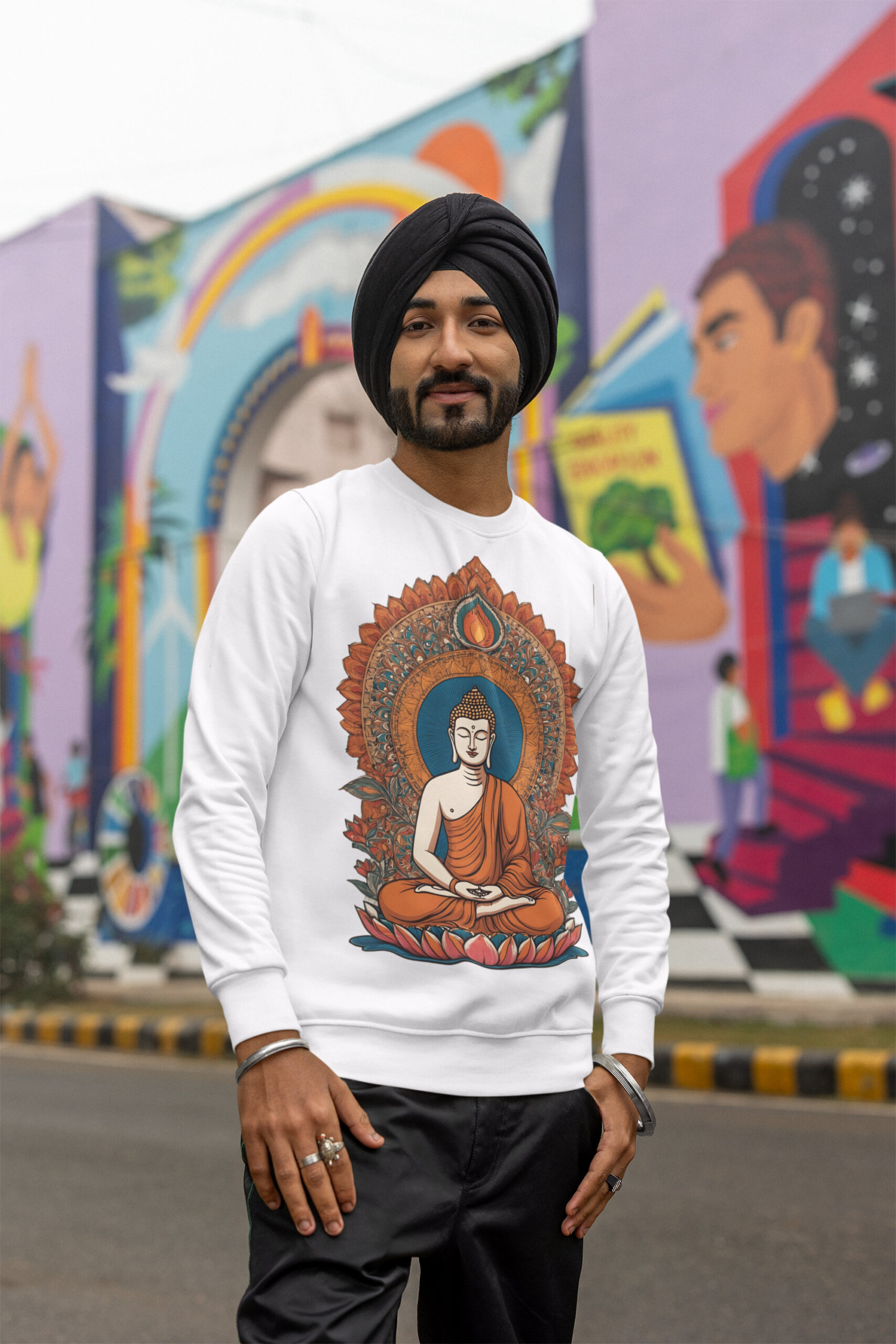 Step into stillness and style with our Indian Heritage Buddha Sweatshirt—a piece that merges mindful artistry with everyday ease. Crafted from 100% cotton, this 300 GSM fleece delivers the rare blend of softness, breathability, and cozy warmth you’ll reach for again and again. Its unisex regular fit drapes effortlessly, while ribbed cuffs and hem provide a snug finish that feels made for you.