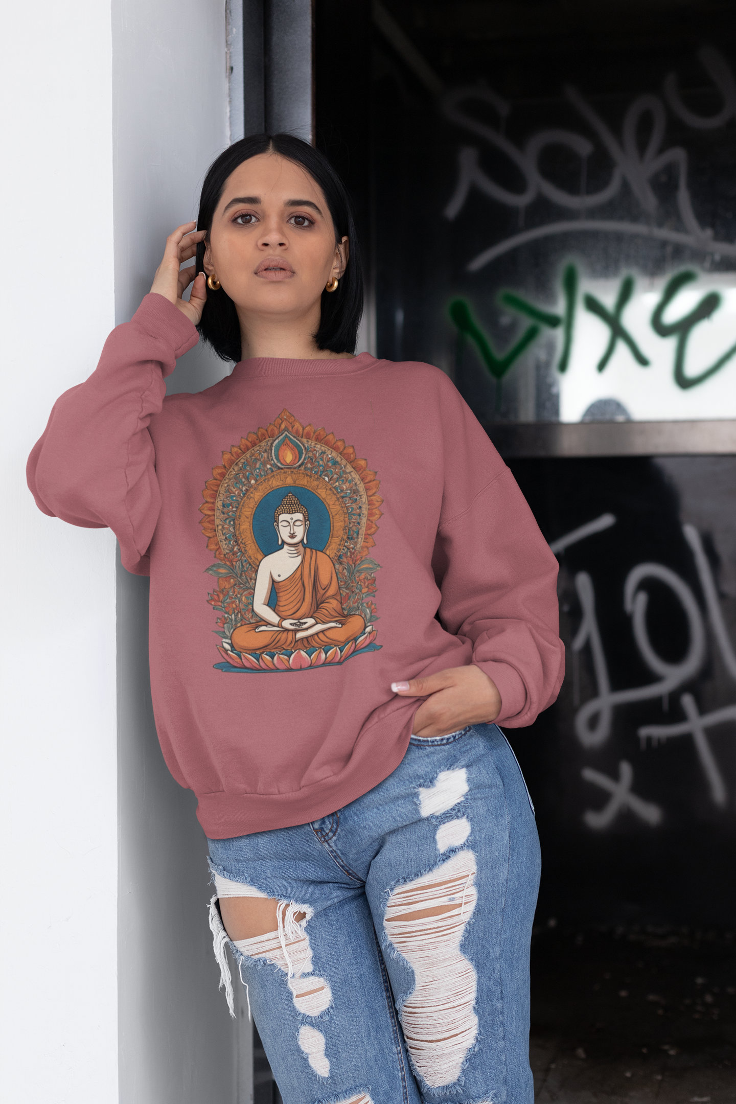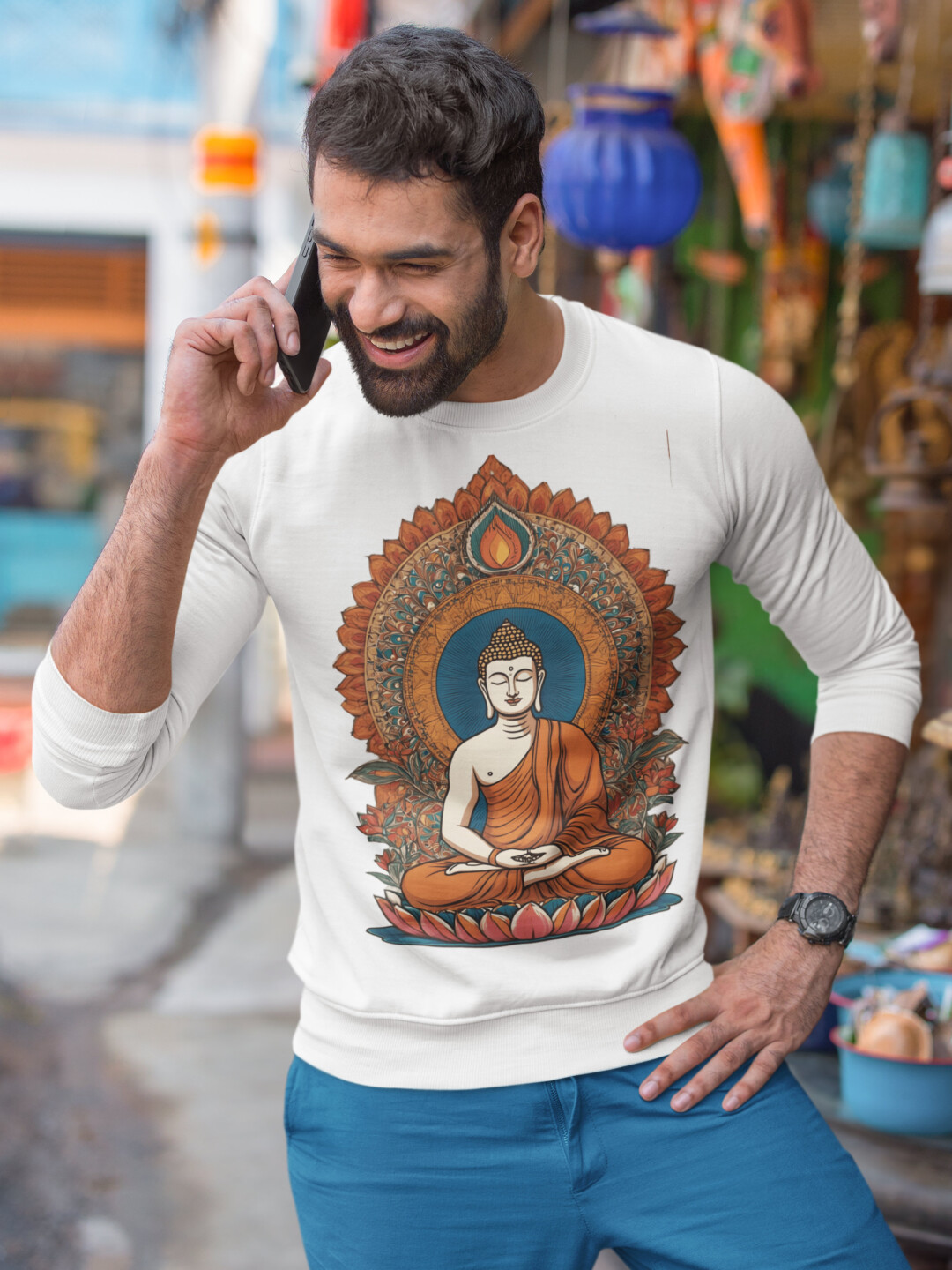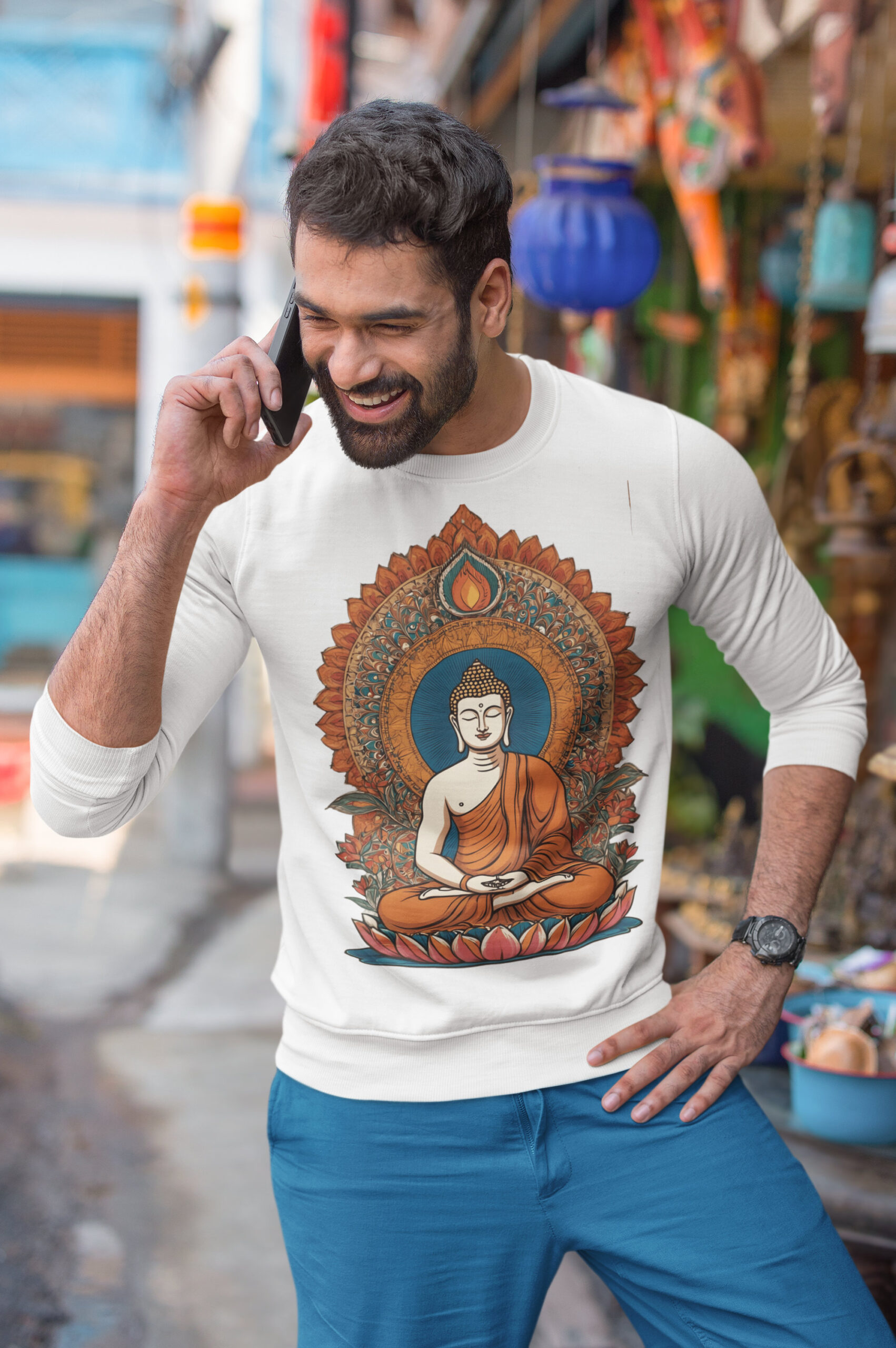 Step into stillness and style with our Indian Heritage Buddha Sweatshirt—a piece that merges mindful artistry with everyday ease. Crafted from 100% cotton, this 300 GSM fleece delivers the rare blend of softness, breathability, and cozy warmth you’ll reach for again and again. Its unisex regular fit drapes effortlessly, while ribbed cuffs and hem provide a snug finish that feels made for you.