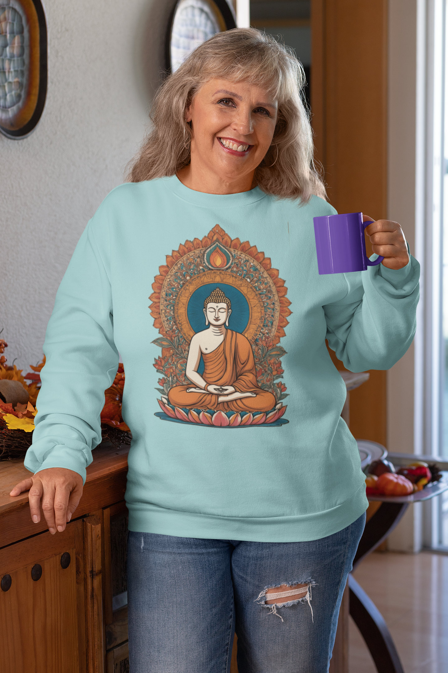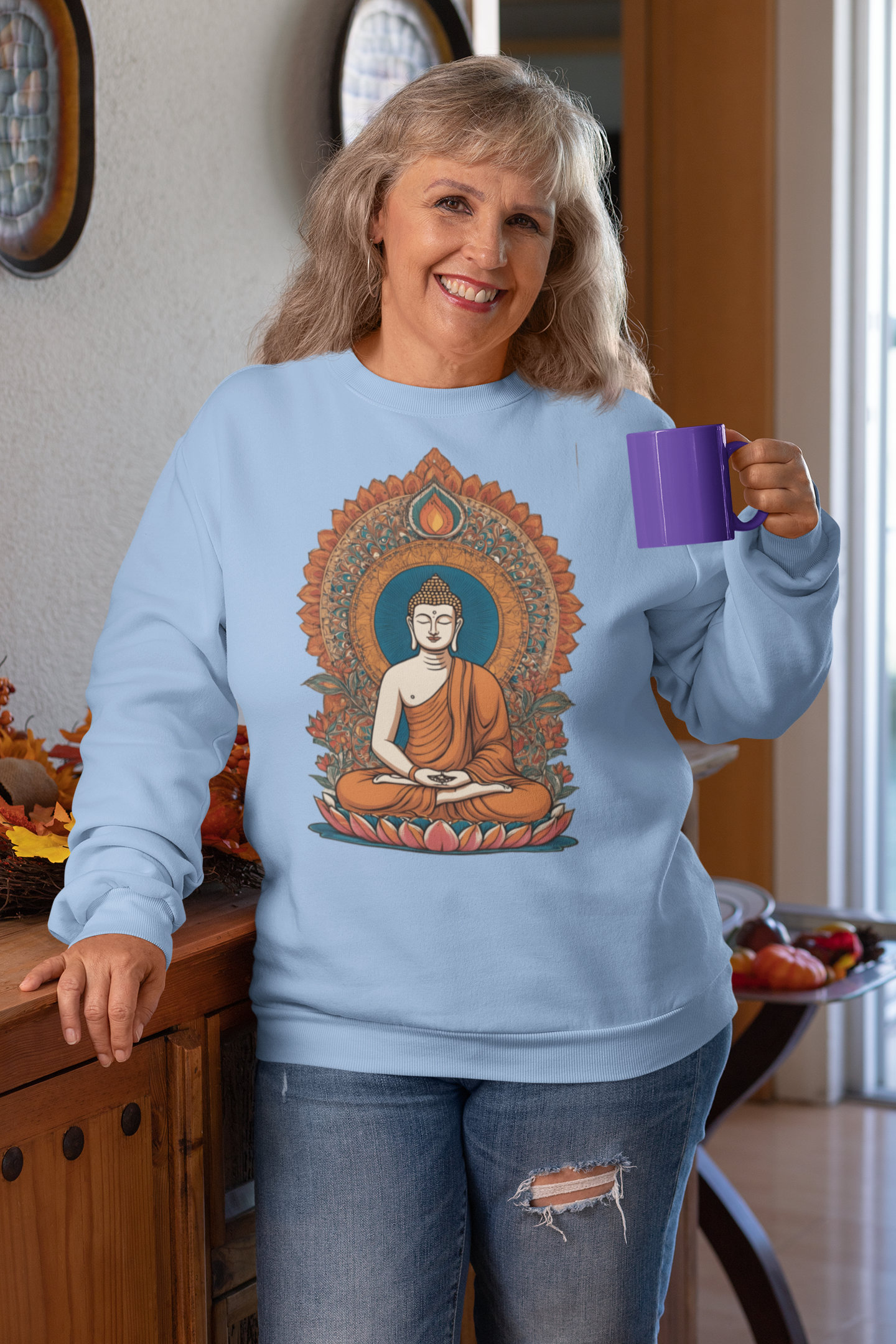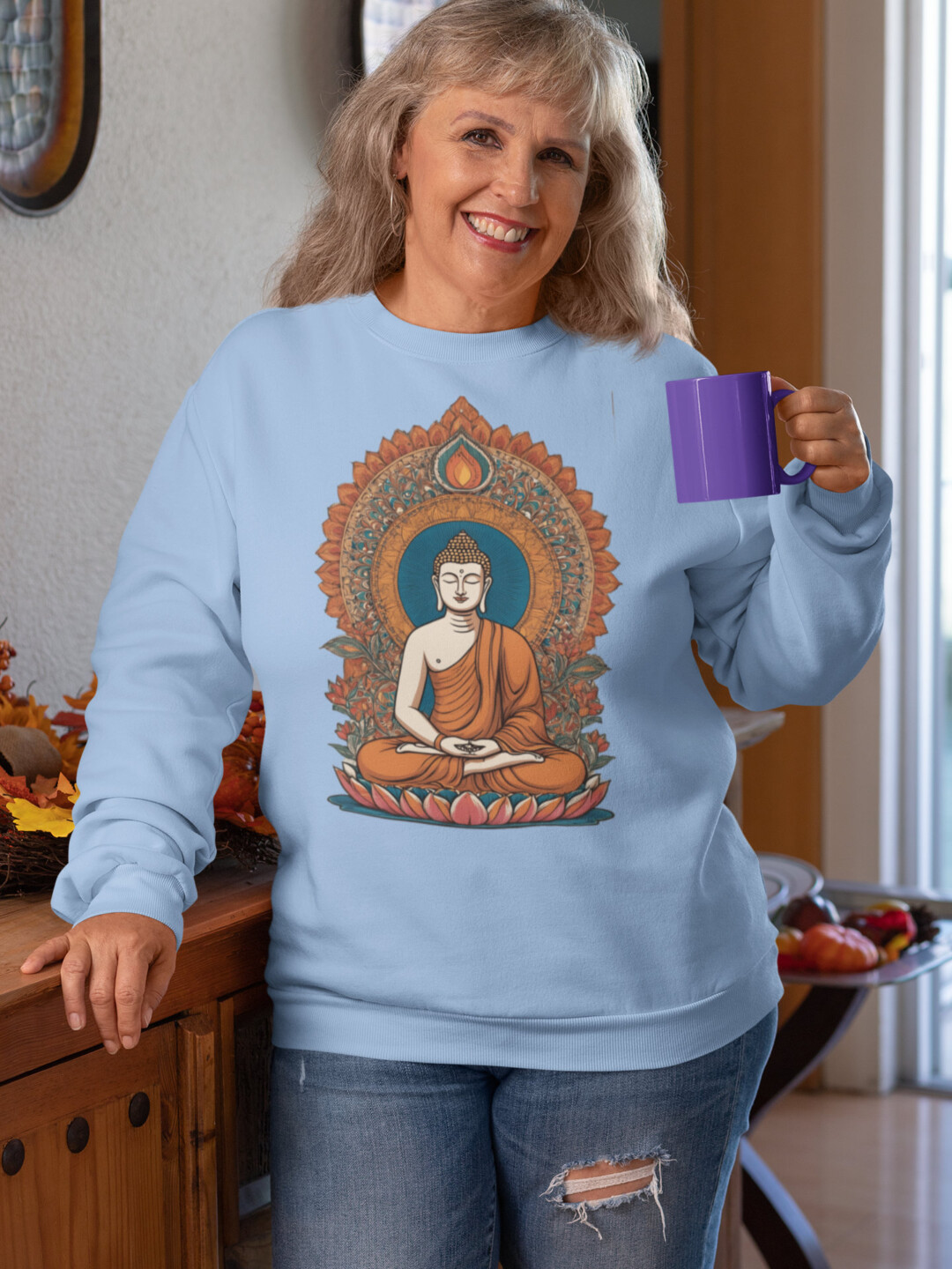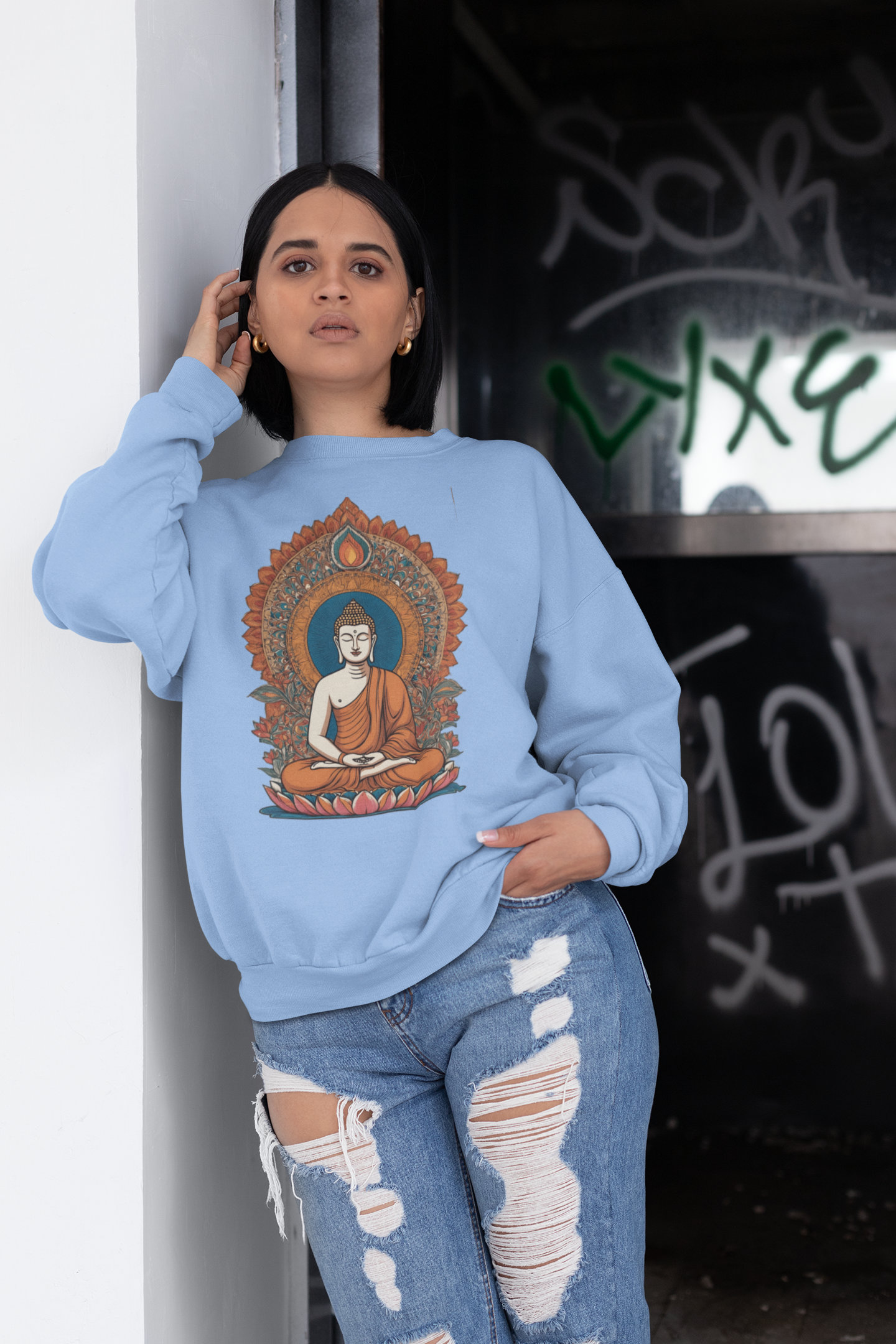 Unisex Breathable Sweatshirt – Indian Heritage – Light Series-Buddha
