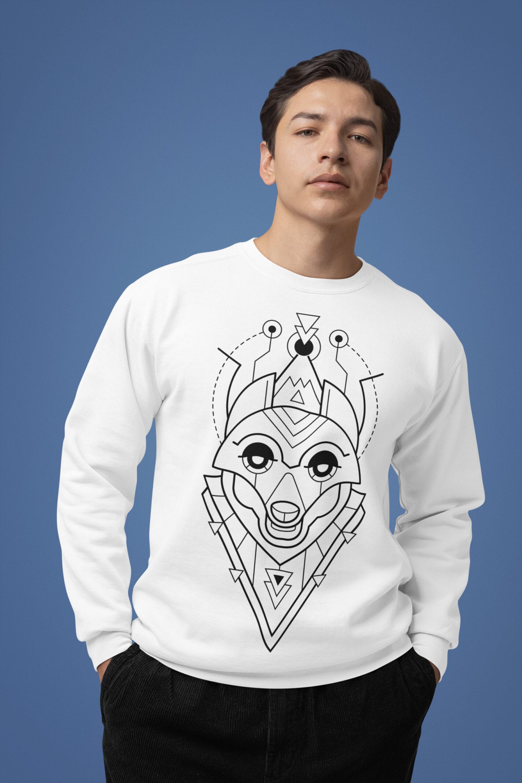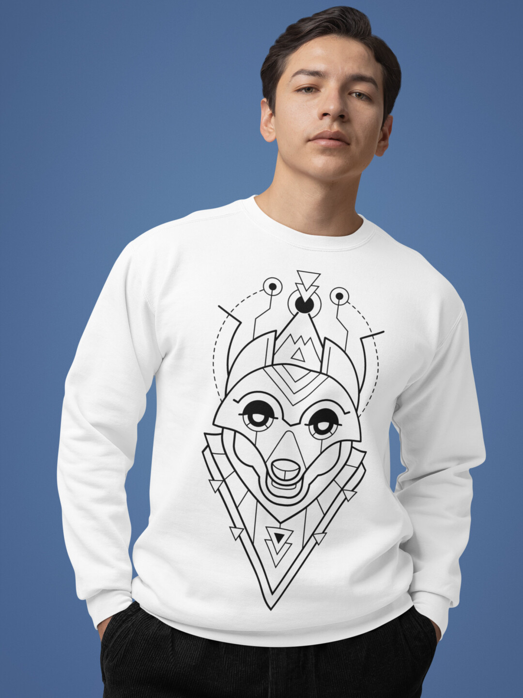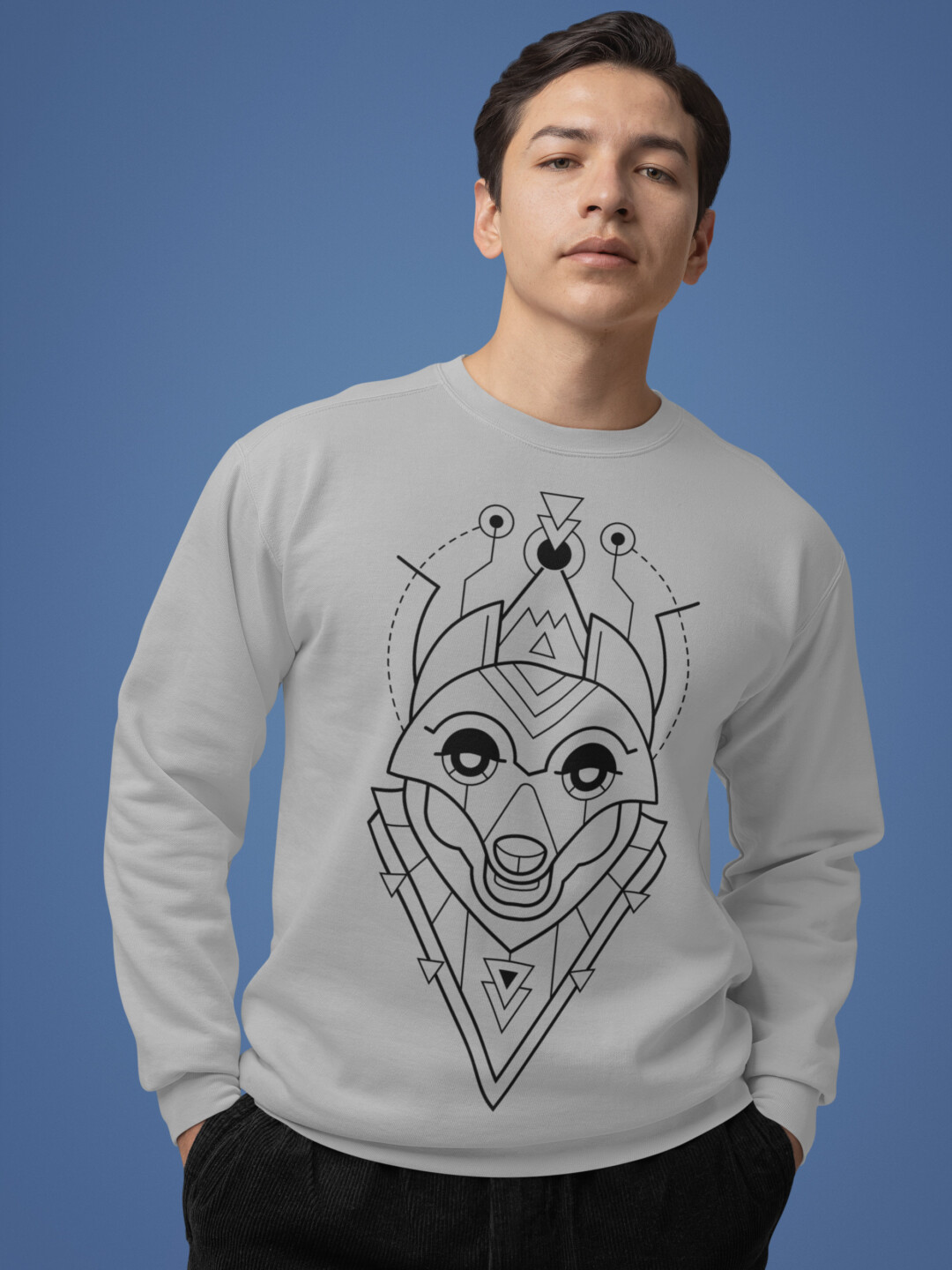 Featuring a striking fox illustration built from crisp geometric lines, this design fuses the clever charm of the fox with a futuristic, space-age aesthetic. It’s bold yet refined, a quiet flex that turns heads without trying too hard. Whether you’re navigating urban streets or off-the-grid escapes, this sweatshirt brings smart energy to any setting.