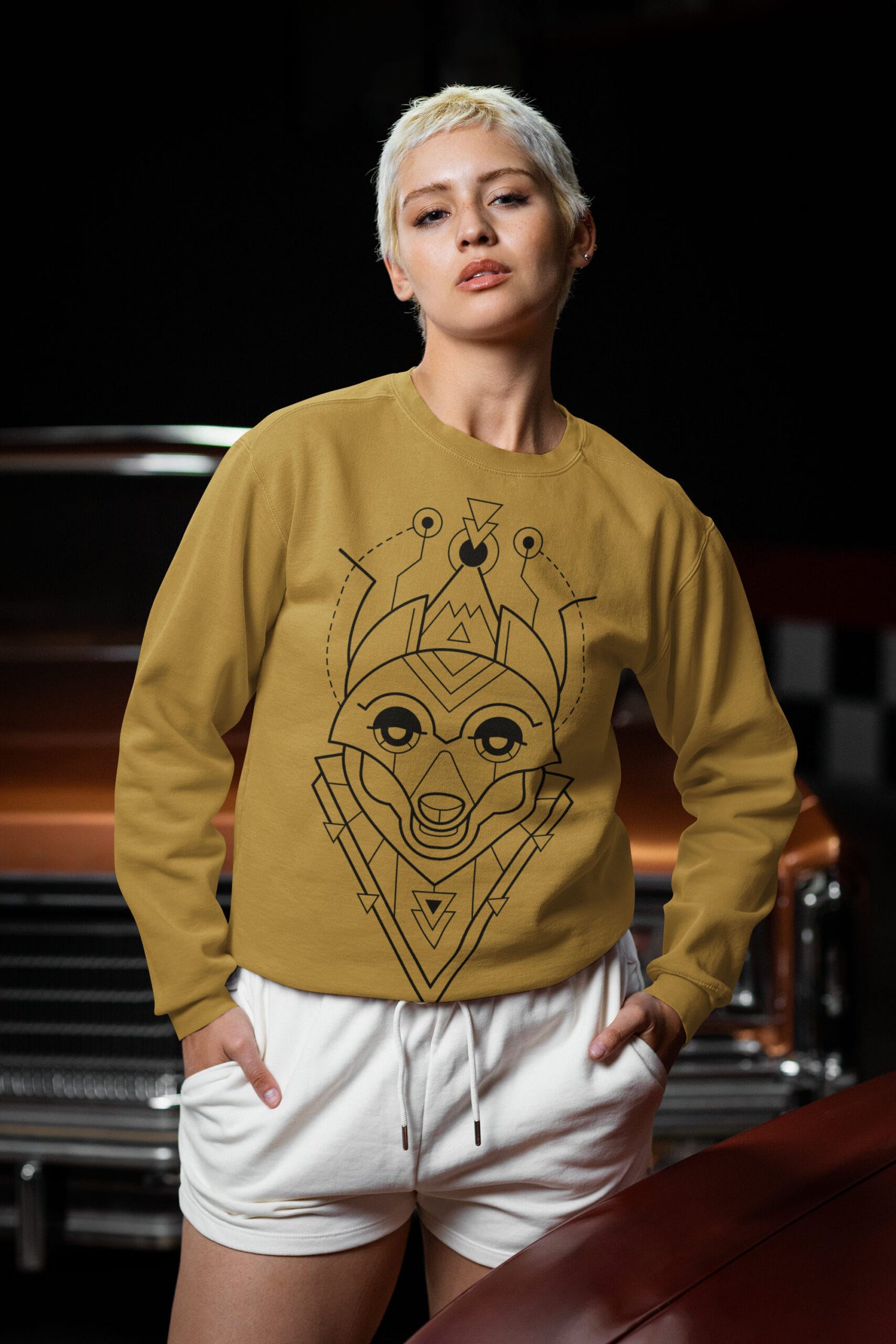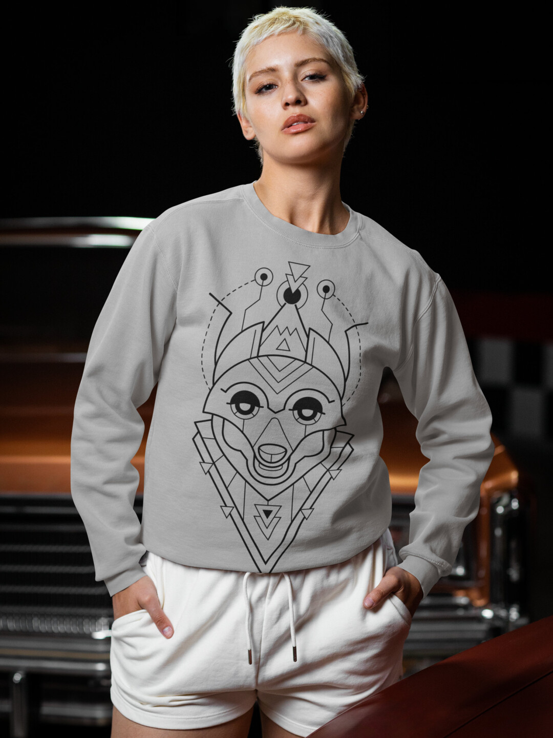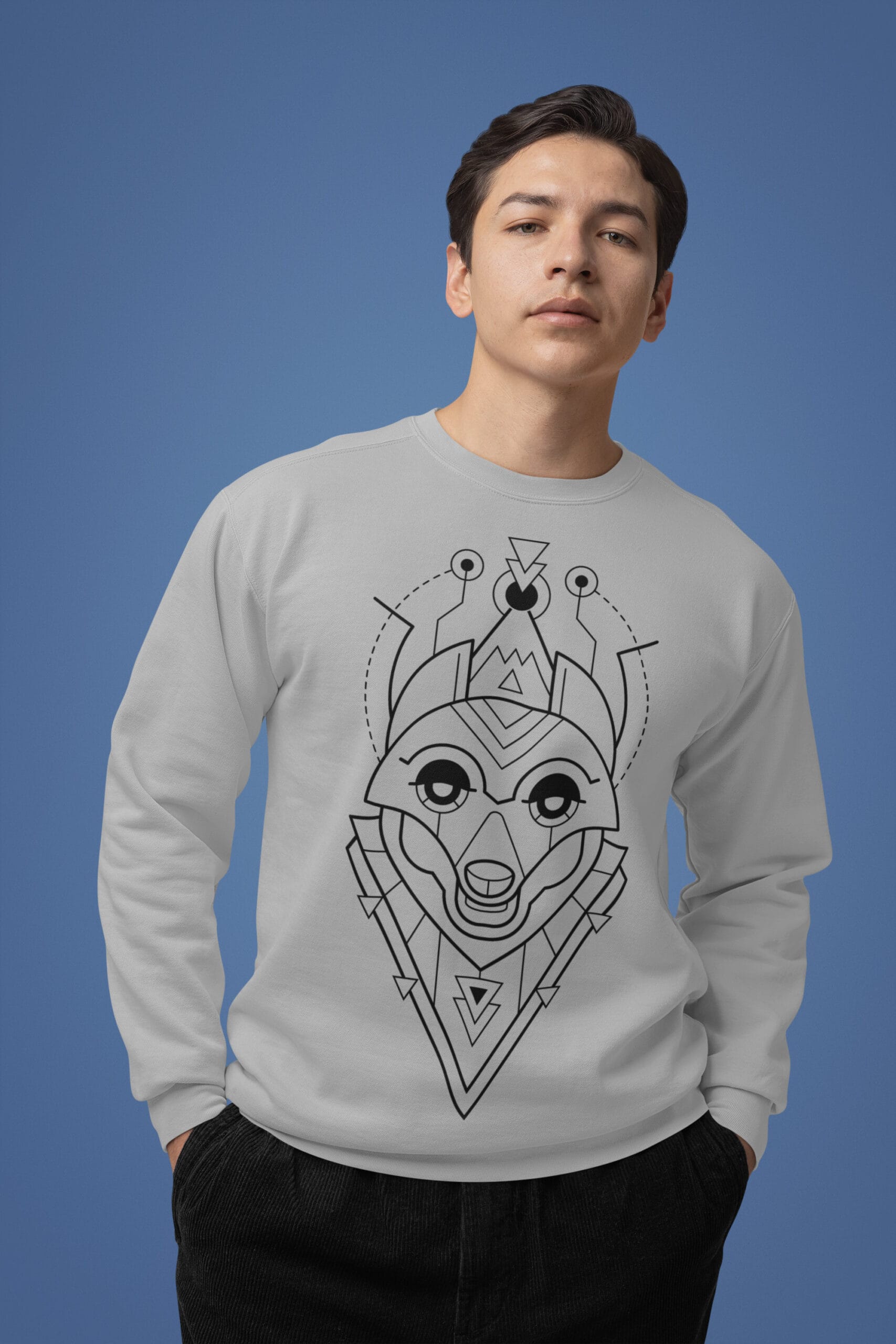 Featuring a striking fox illustration built from crisp geometric lines, this design fuses the clever charm of the fox with a futuristic, space-age aesthetic. It’s bold yet refined, a quiet flex that turns heads without trying too hard. Whether you’re navigating urban streets or off-the-grid escapes, this sweatshirt brings smart energy to any setting.