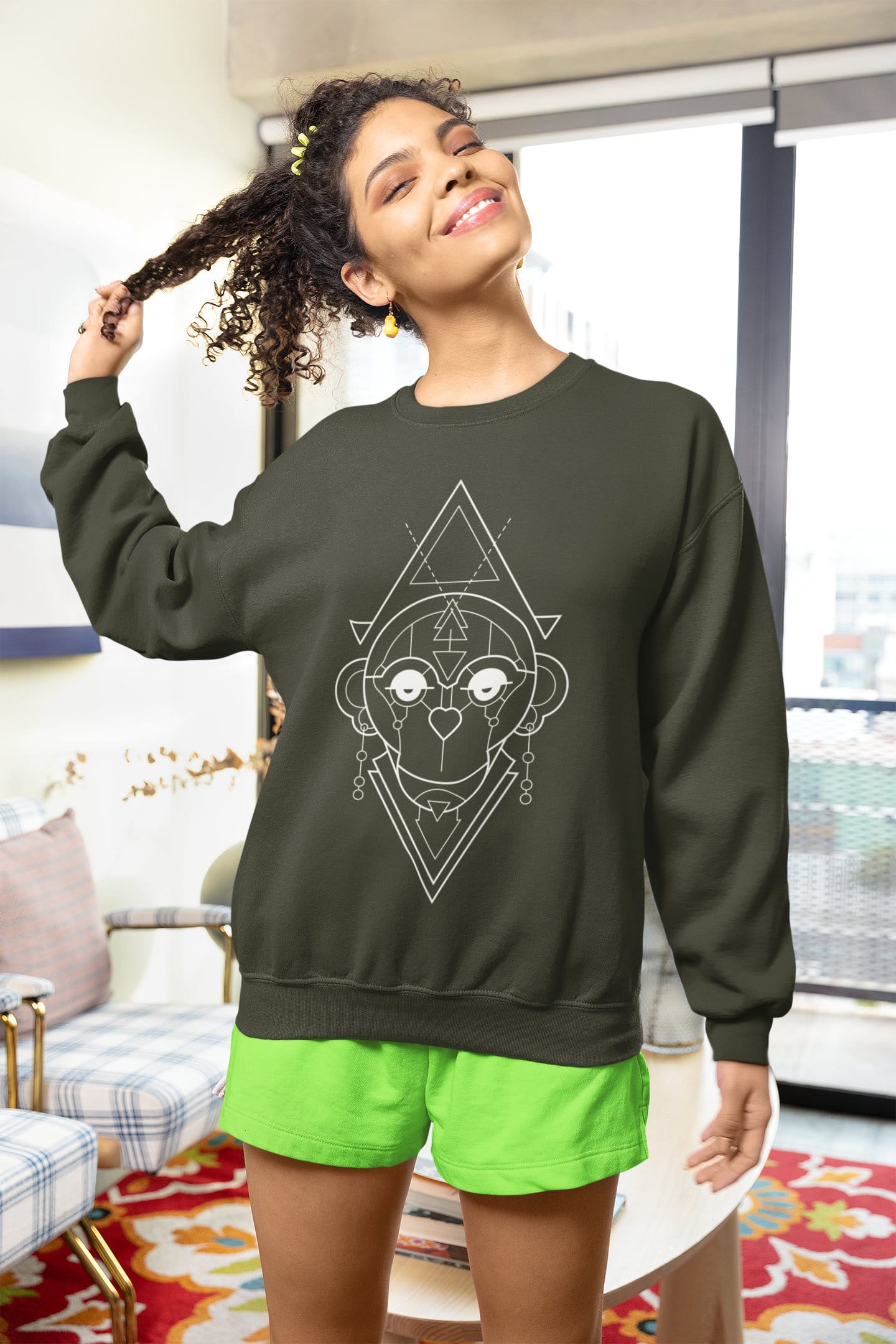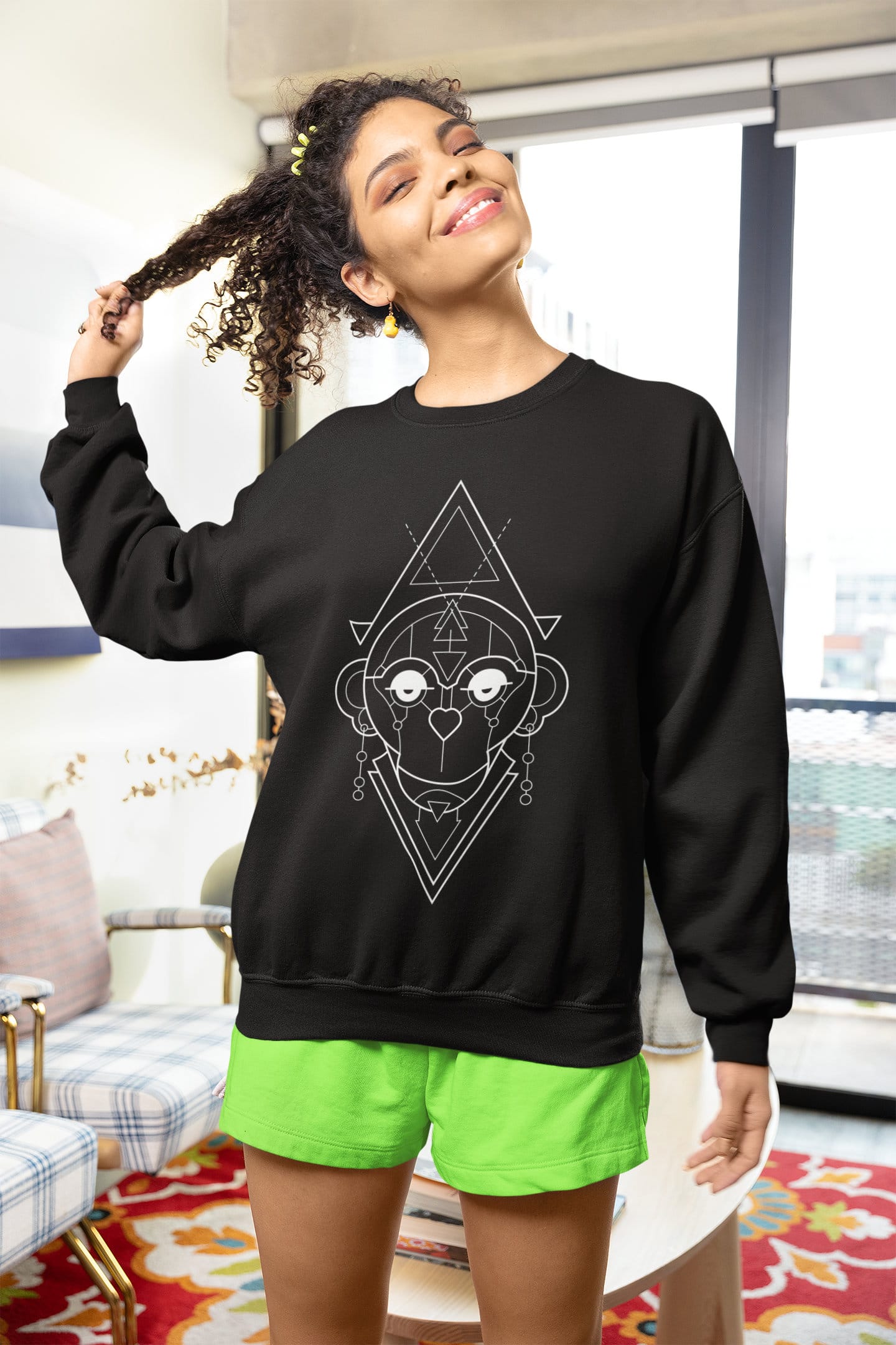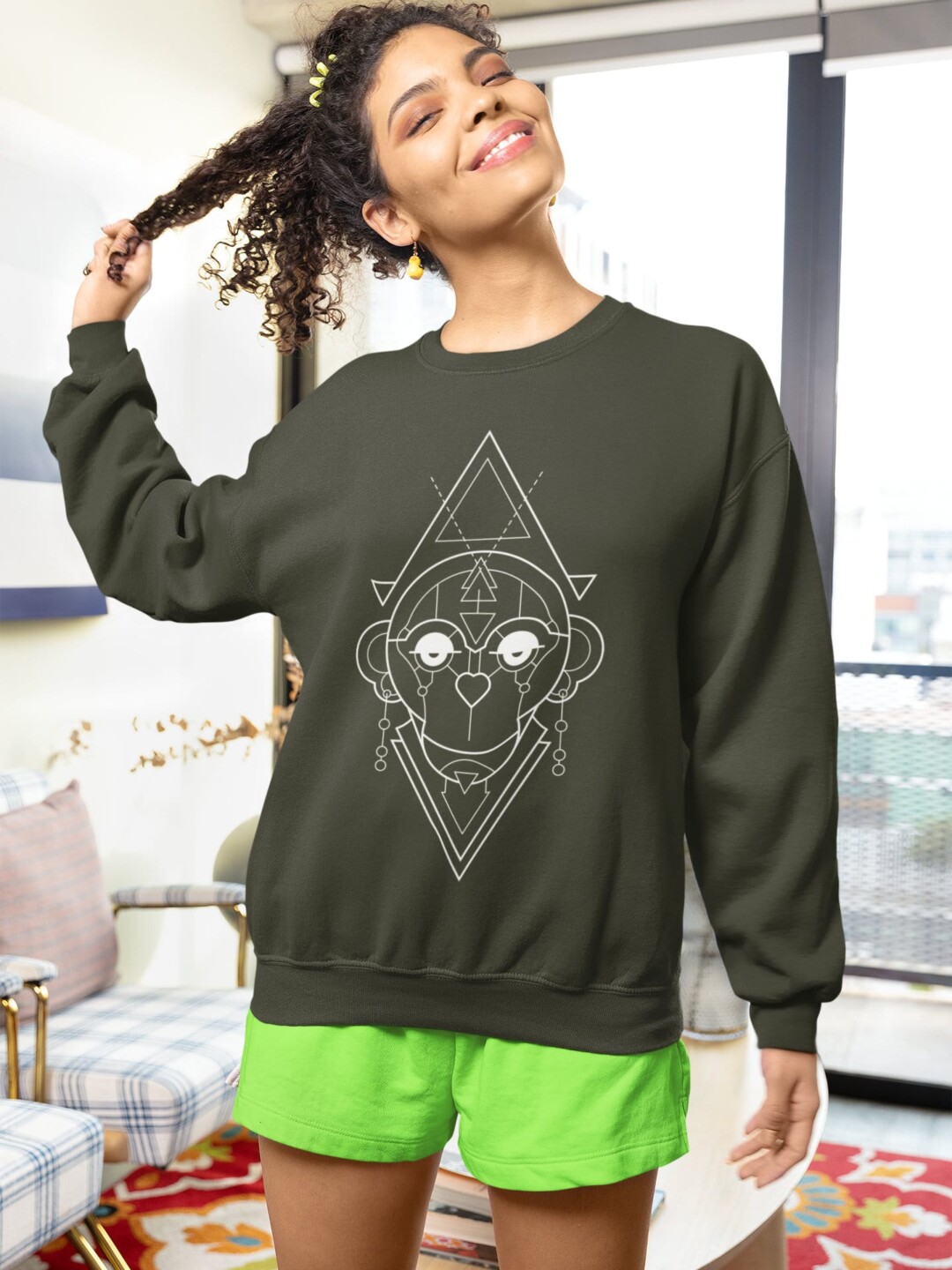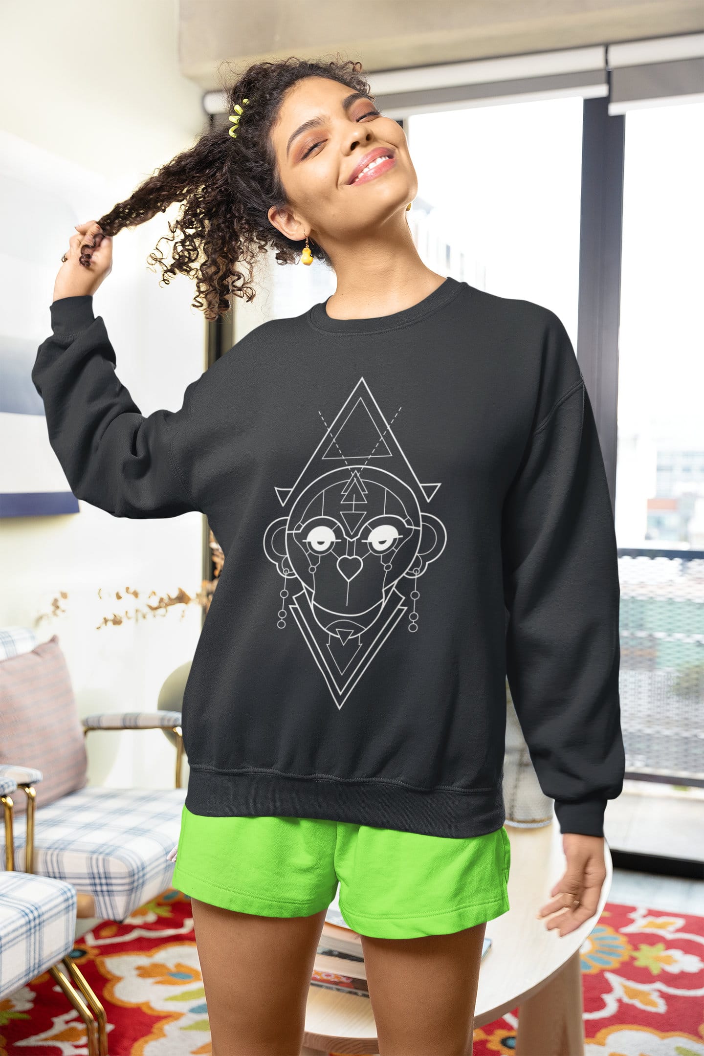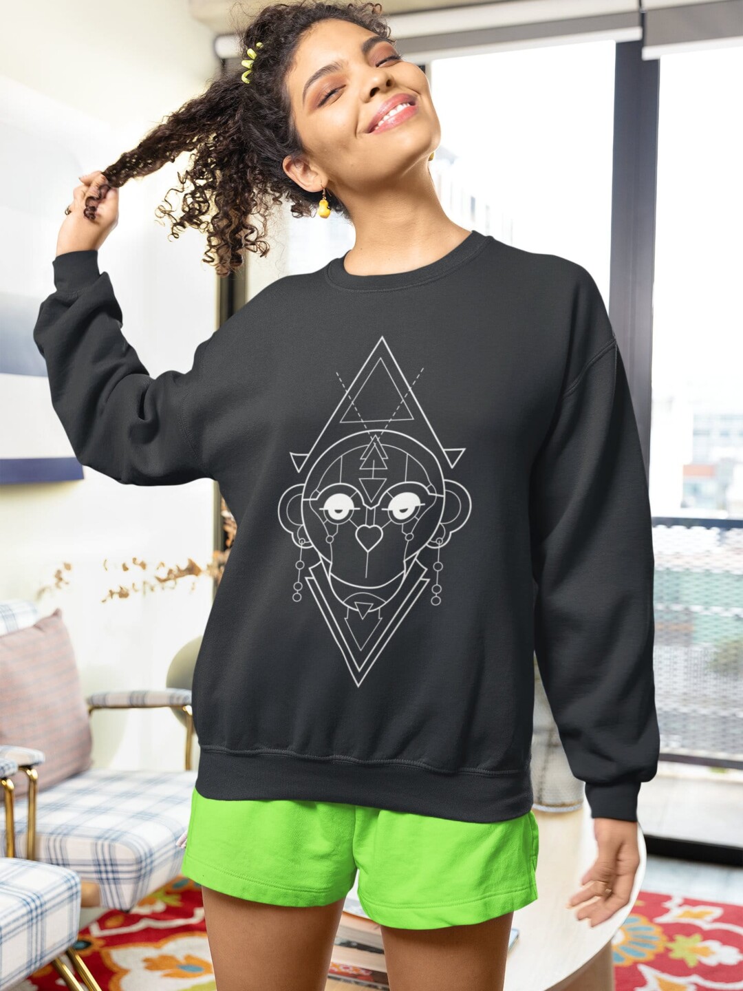 Unisex Breathable Sweatshirt-Geometric Series-Monkey-W