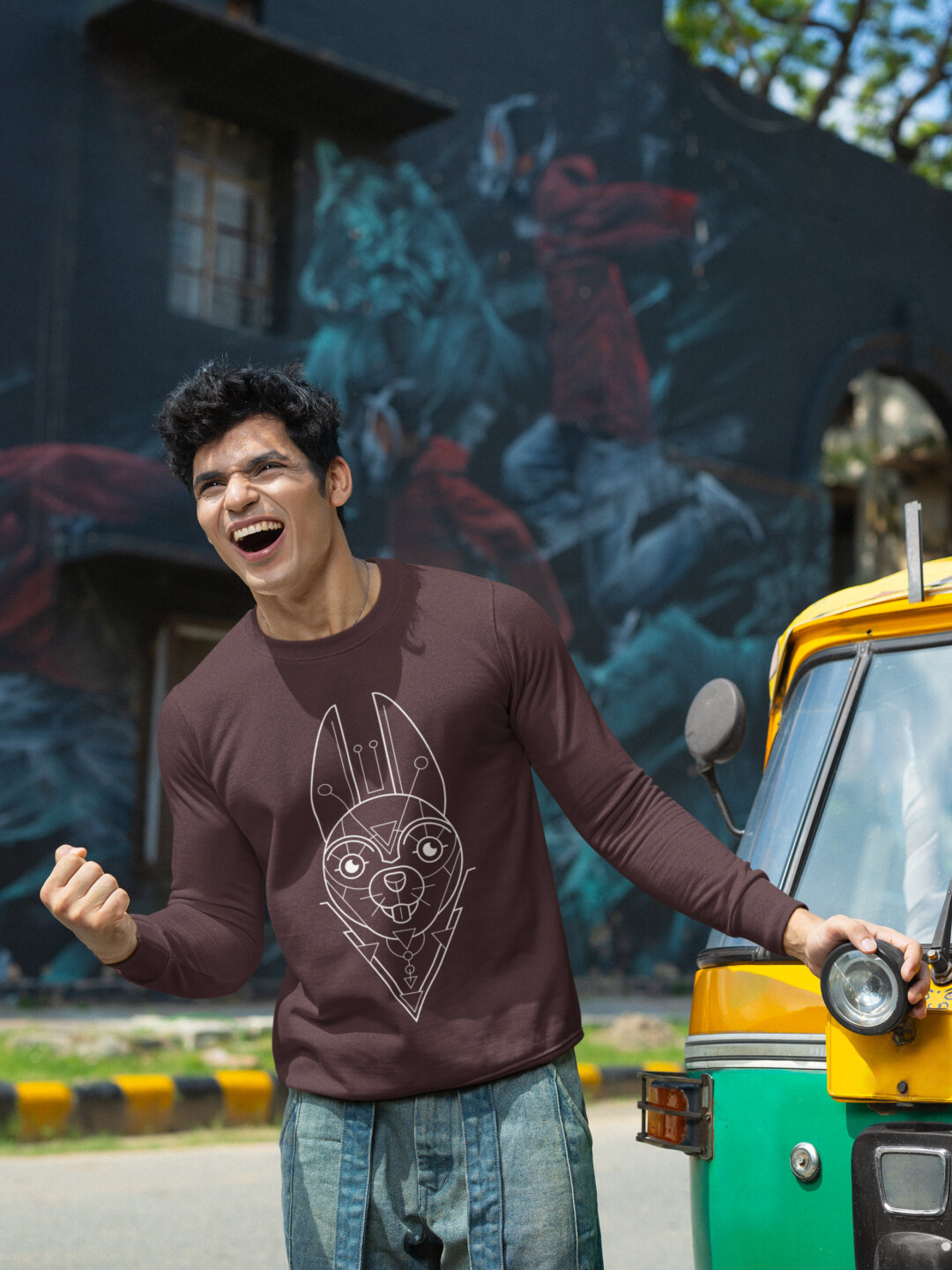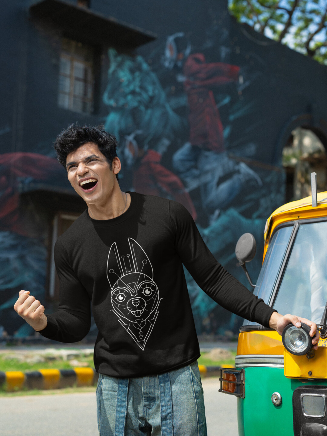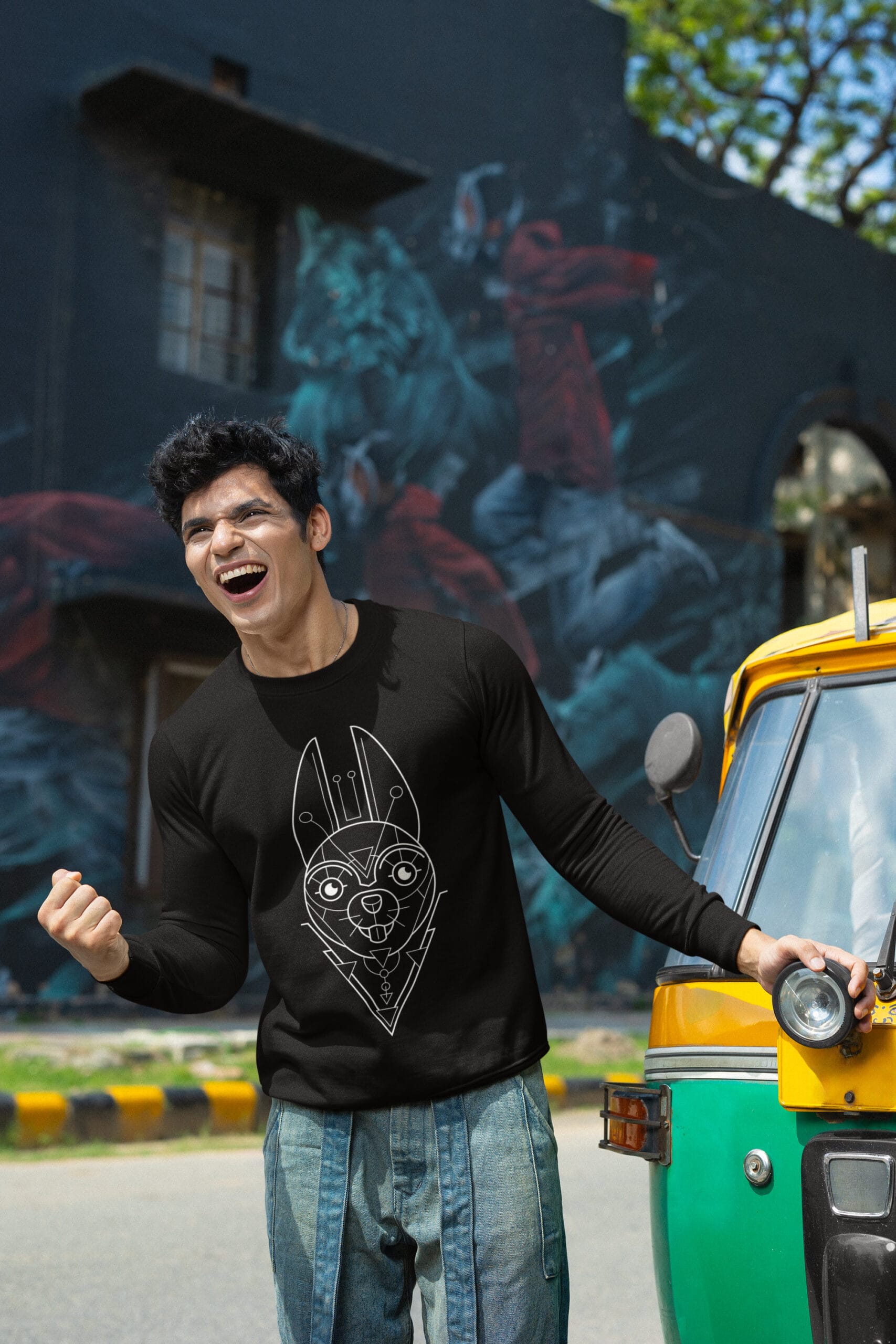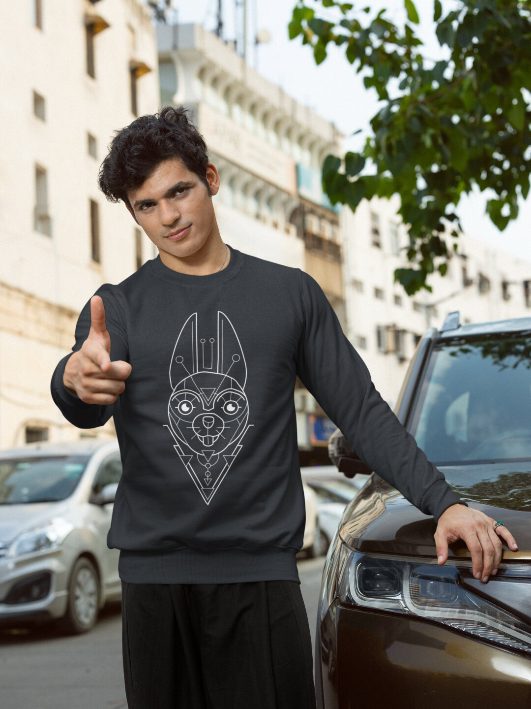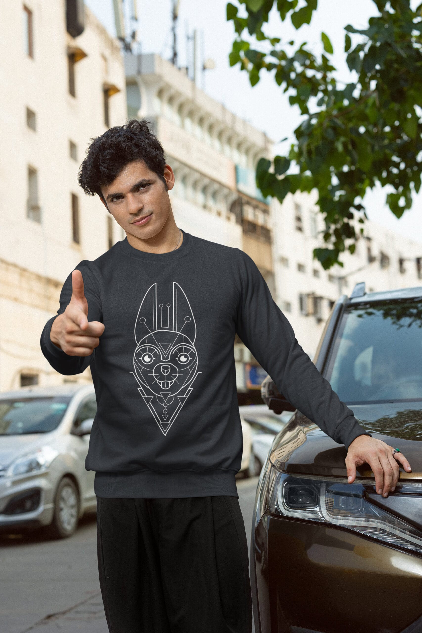 This design takes the rabbit—a symbol of agility, instinct, and speed—and reimagines it in radiant white geometric lines. Minimal yet powerful, the glowing lines cut across the dark fabric like a flash in the night. The result is sleek, futuristic, and full of intention. It’s a piece for those who move fast, think faster, and always stay one step ahead.