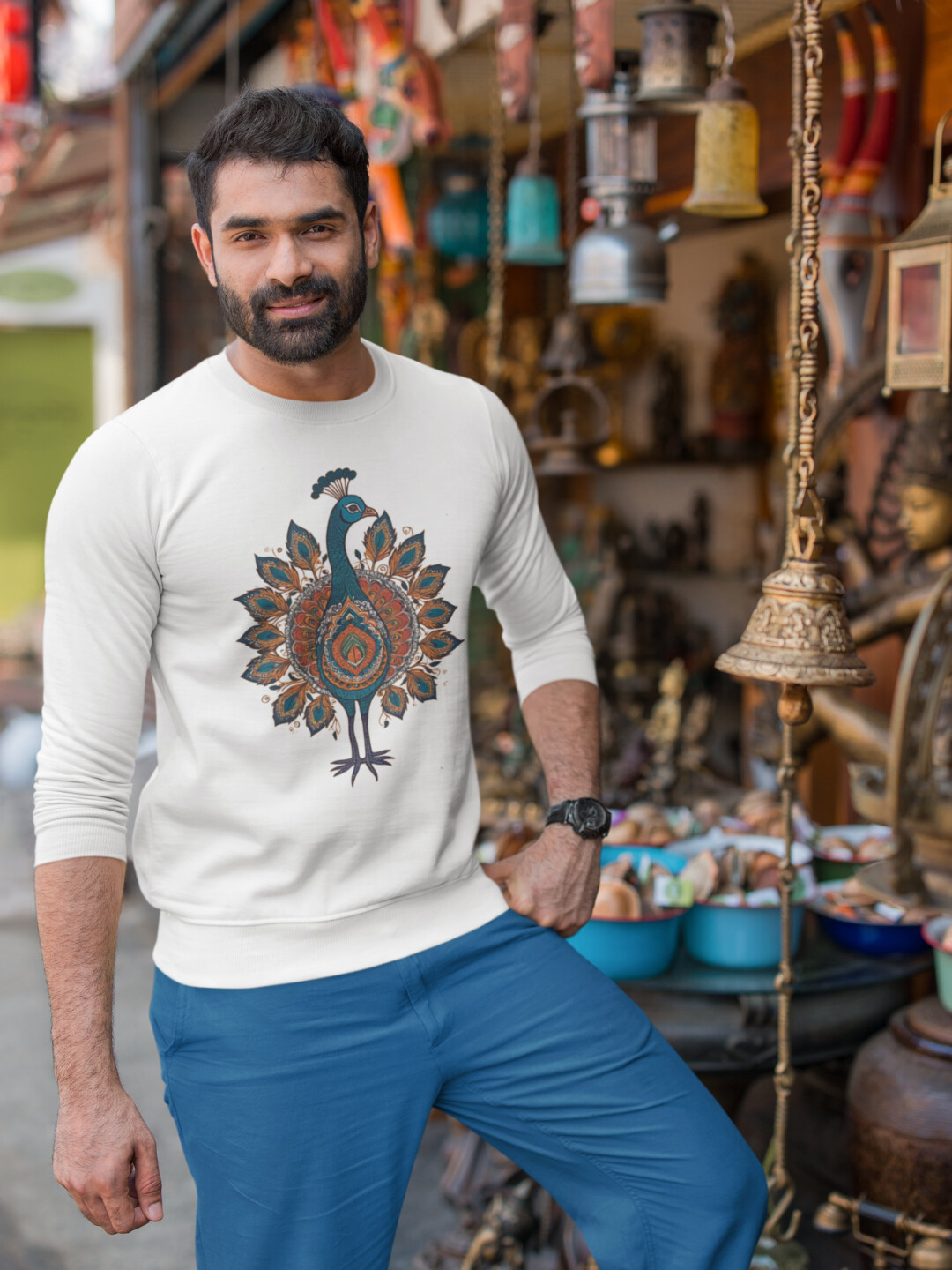 Step into a world of subtle elegance with our Heritage Peacock Sweatshirt—where tradition whispers through every thread. Crafted from 100% cotton and 300 GSM fleece, it’s thick enough to keep you warm yet breathable enough for all-day comfort. The unisex regular fit flows with ease, while ribbed cuffs and hem add a touch of structure to its relaxed charm.
