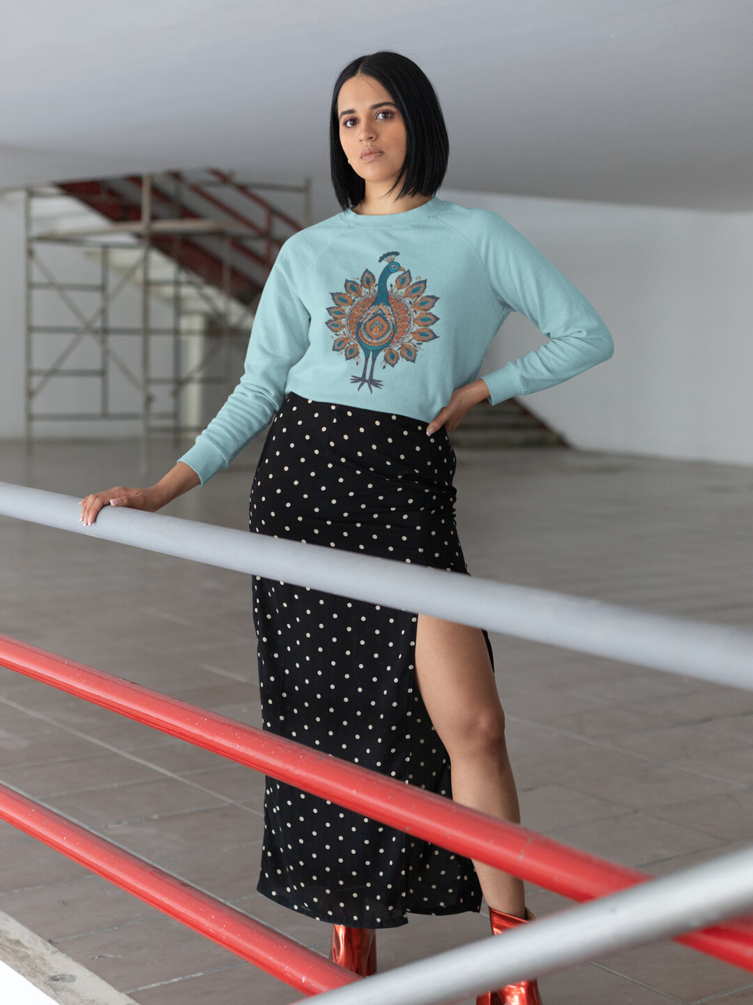 At the heart of this piece lies a breathtaking peacock design—rich with intricate detail and steeped in Indian heritage. It’s more than decoration; it’s a symbol of grace, pride, and beauty brought to life against a soft, airy color palette that evokes calm and sophistication.