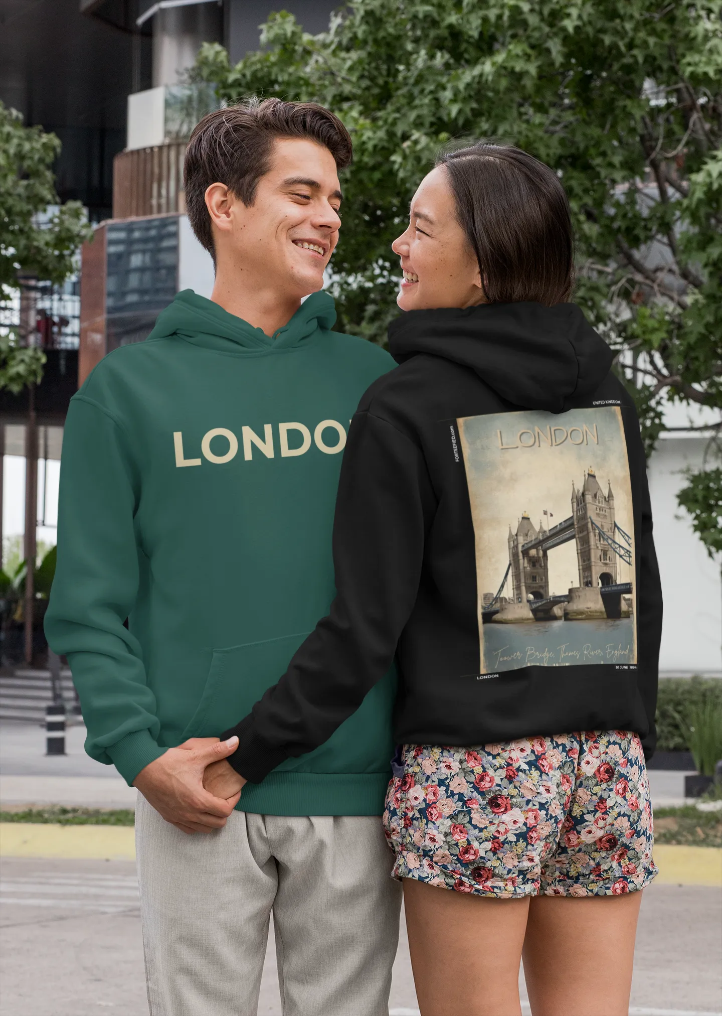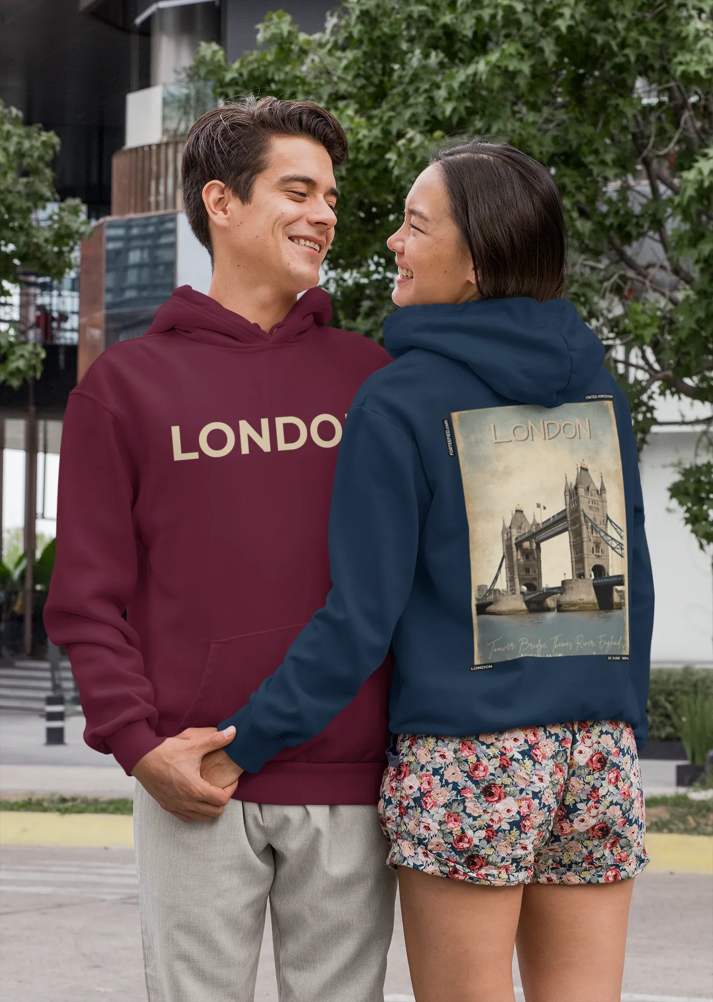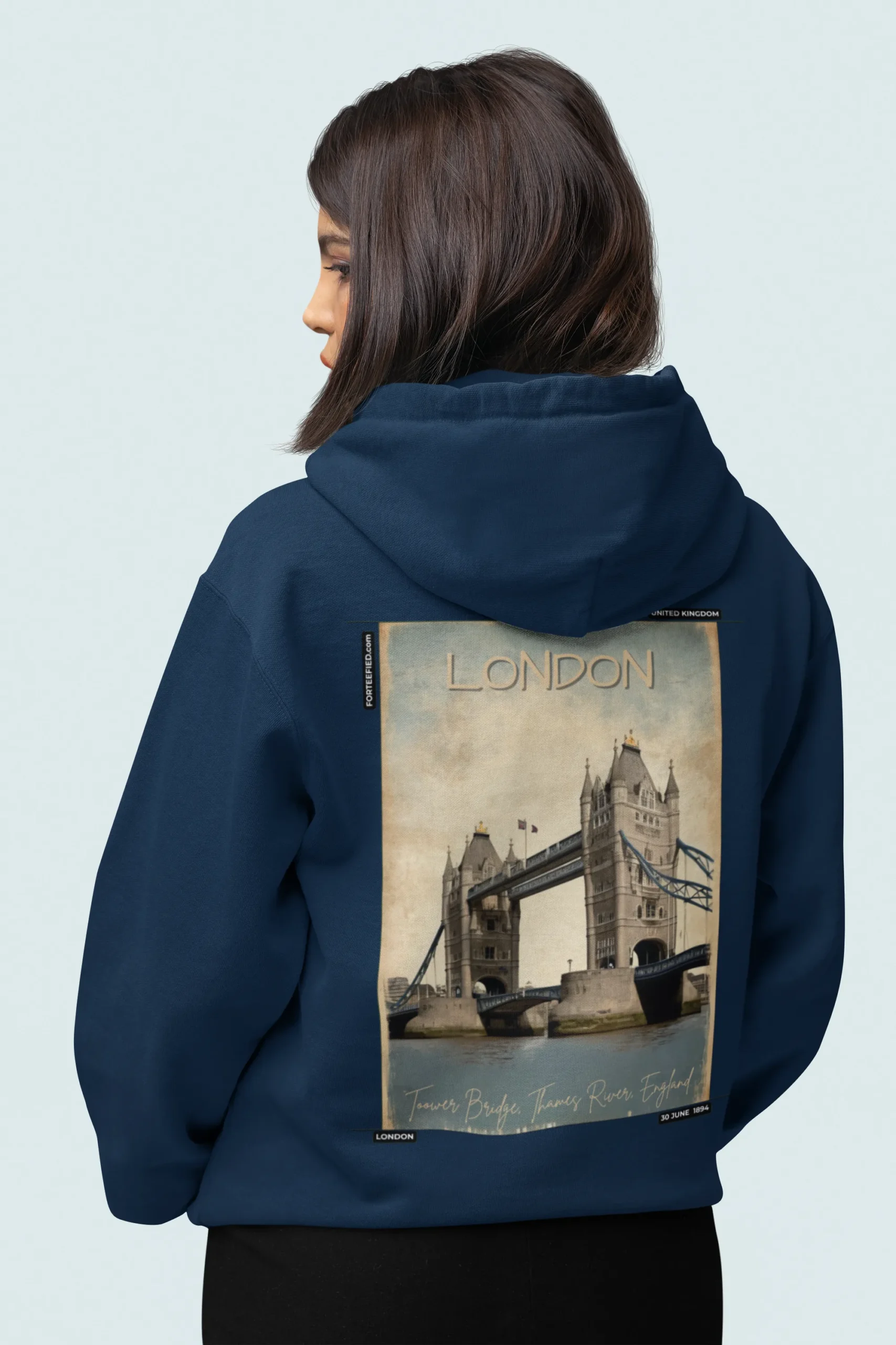 This isn’t just a hoodie. It’s a whole vibe. On the back? A bold, beautiful print of the legendary Tower Bridge — because your exits should be as iconic as your entrances. And on the front, the word LONDON stands proud in bold, like it just took the Tube and still managed to look better than everyone else.