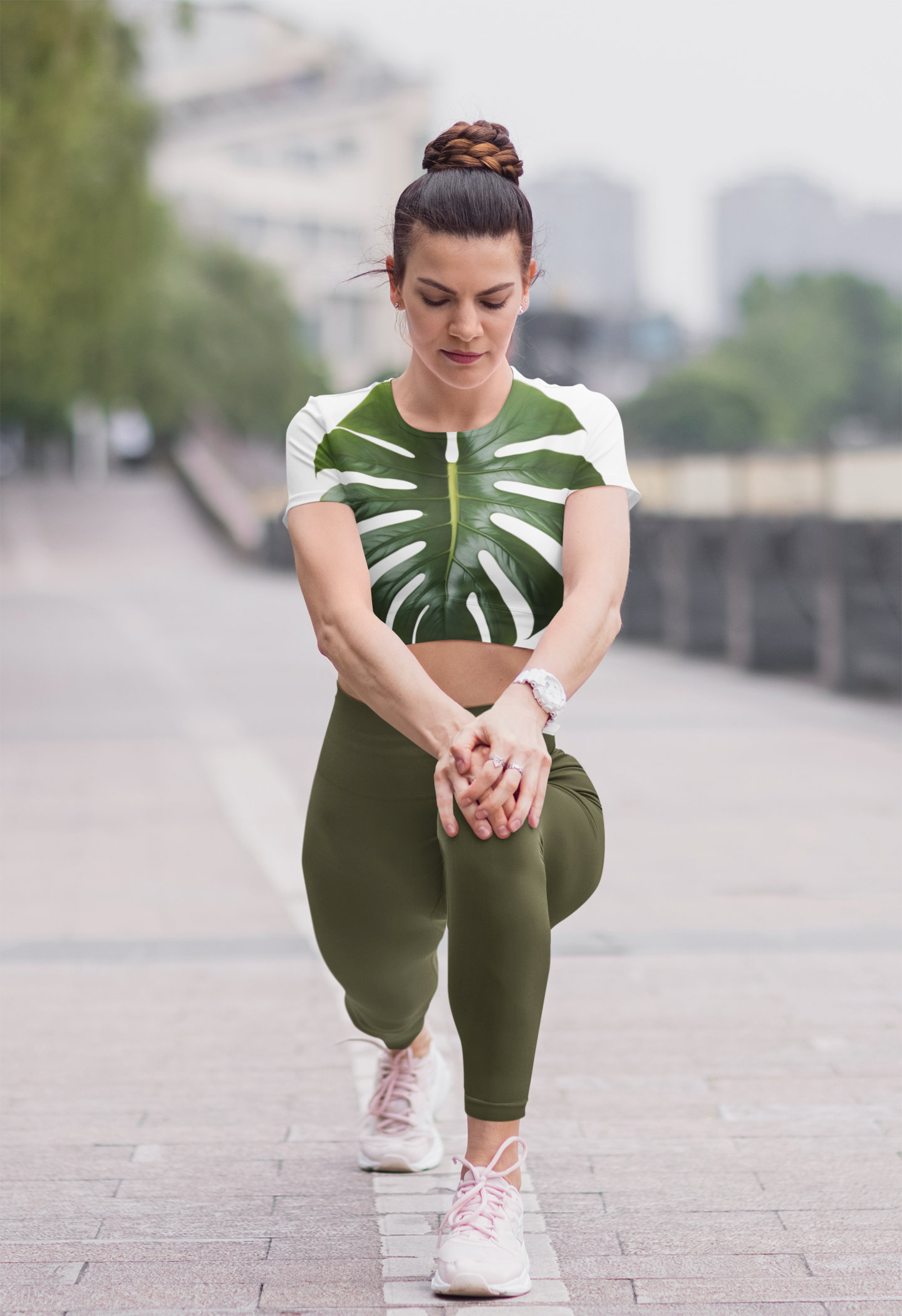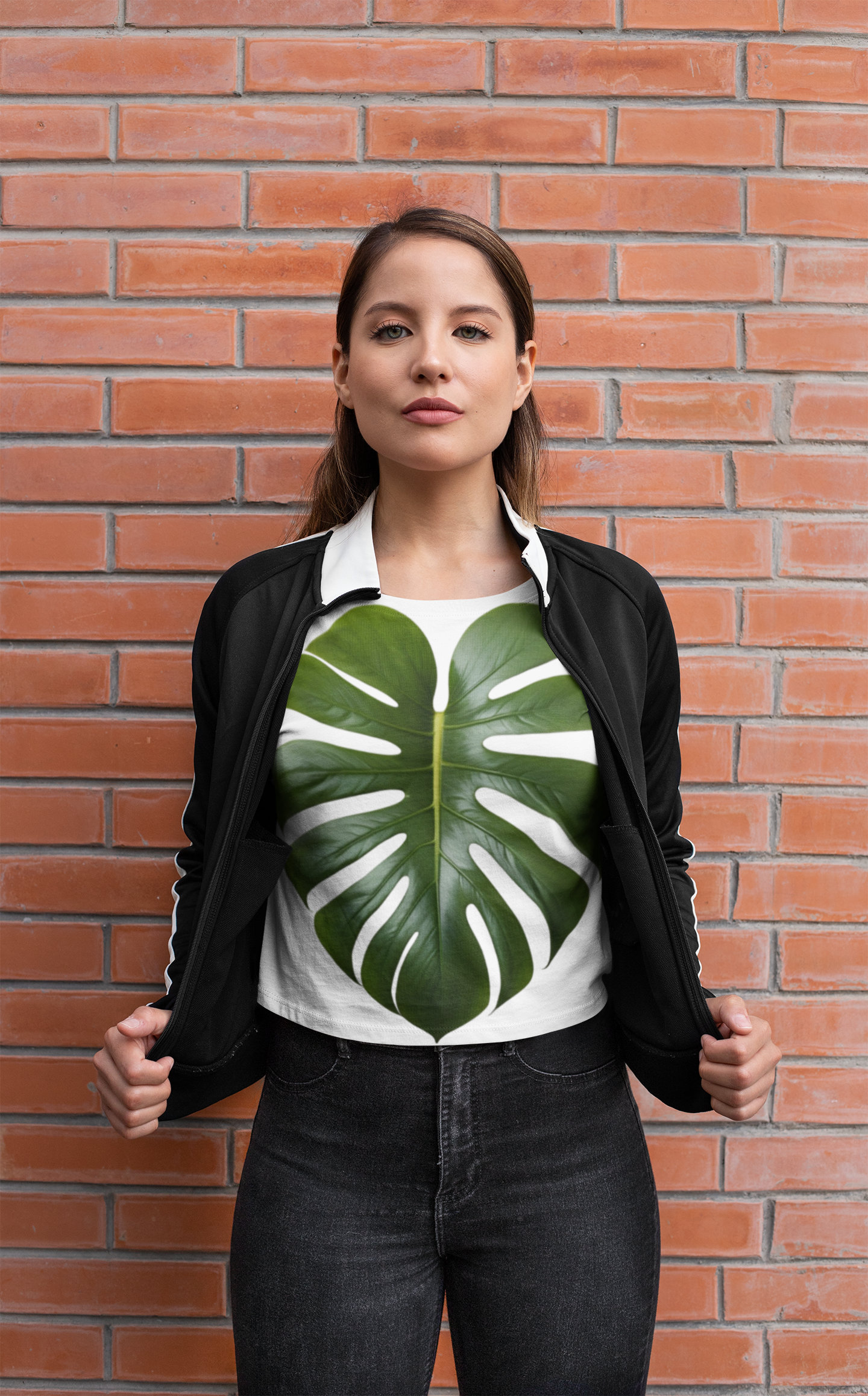 Everyday Crop Top-Wild Petals & Wings Series-Trendy Green Leaf | FORTEEFIED™