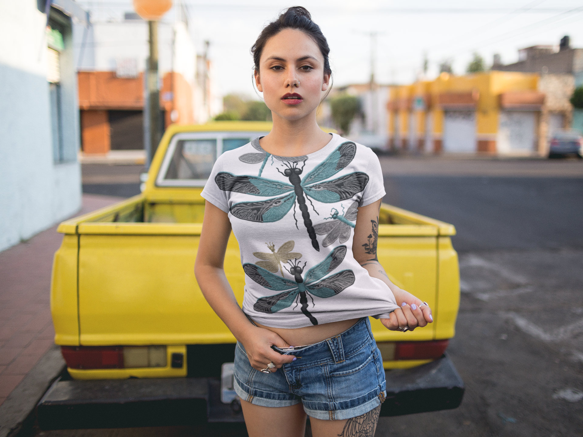 For breezy evenings, throw on an oversized knit cardigan or a lightweight kimono. Add a floppy hat, beaded earrings, or a long pendant necklace to complete your carefree look. This dragonfly graphic tank top makes the perfect statement piece — subtle yet enchanting.