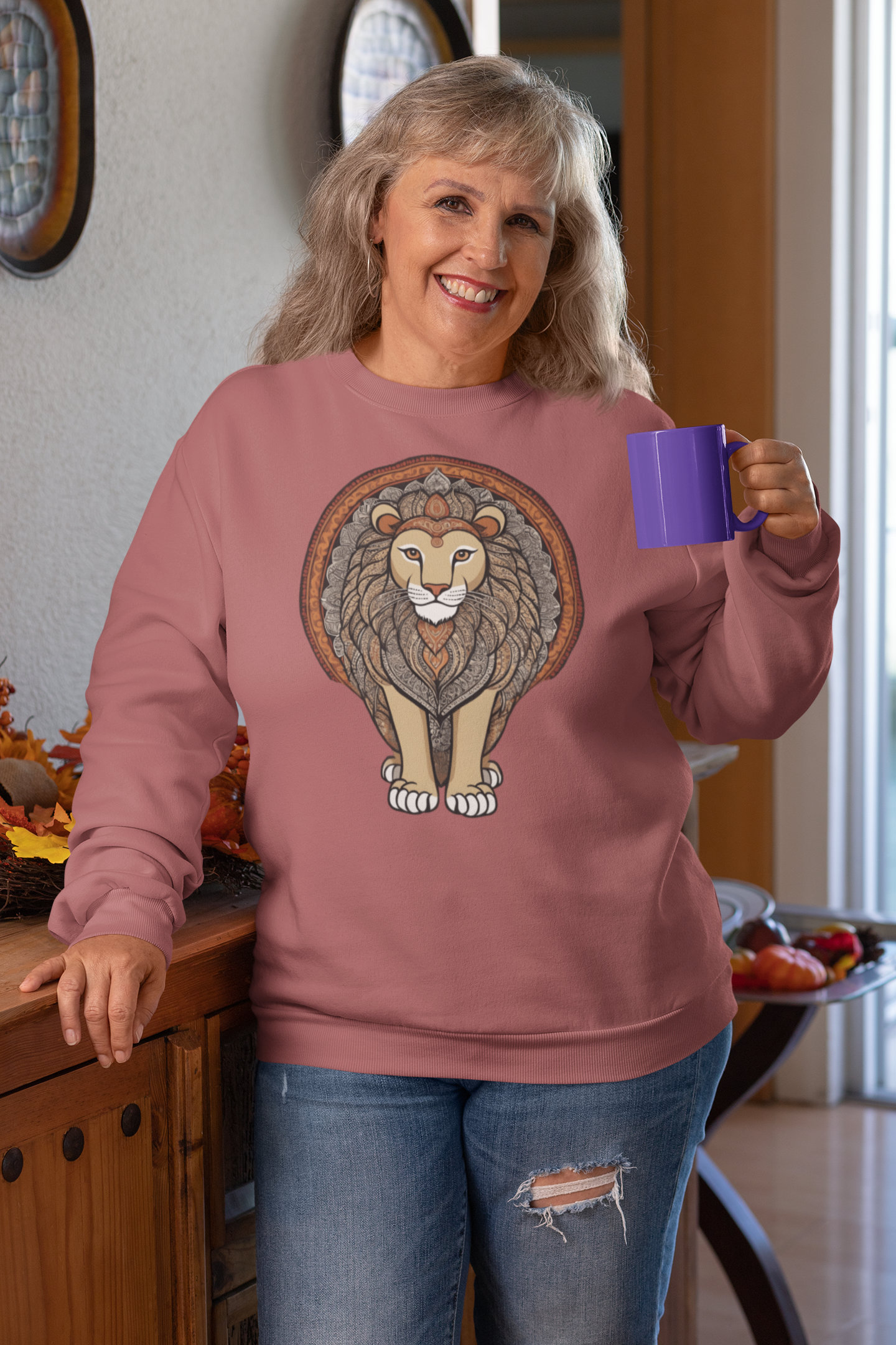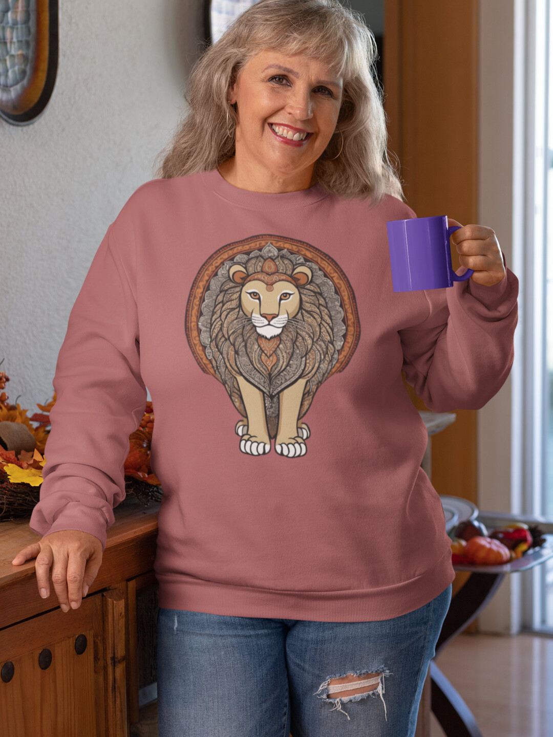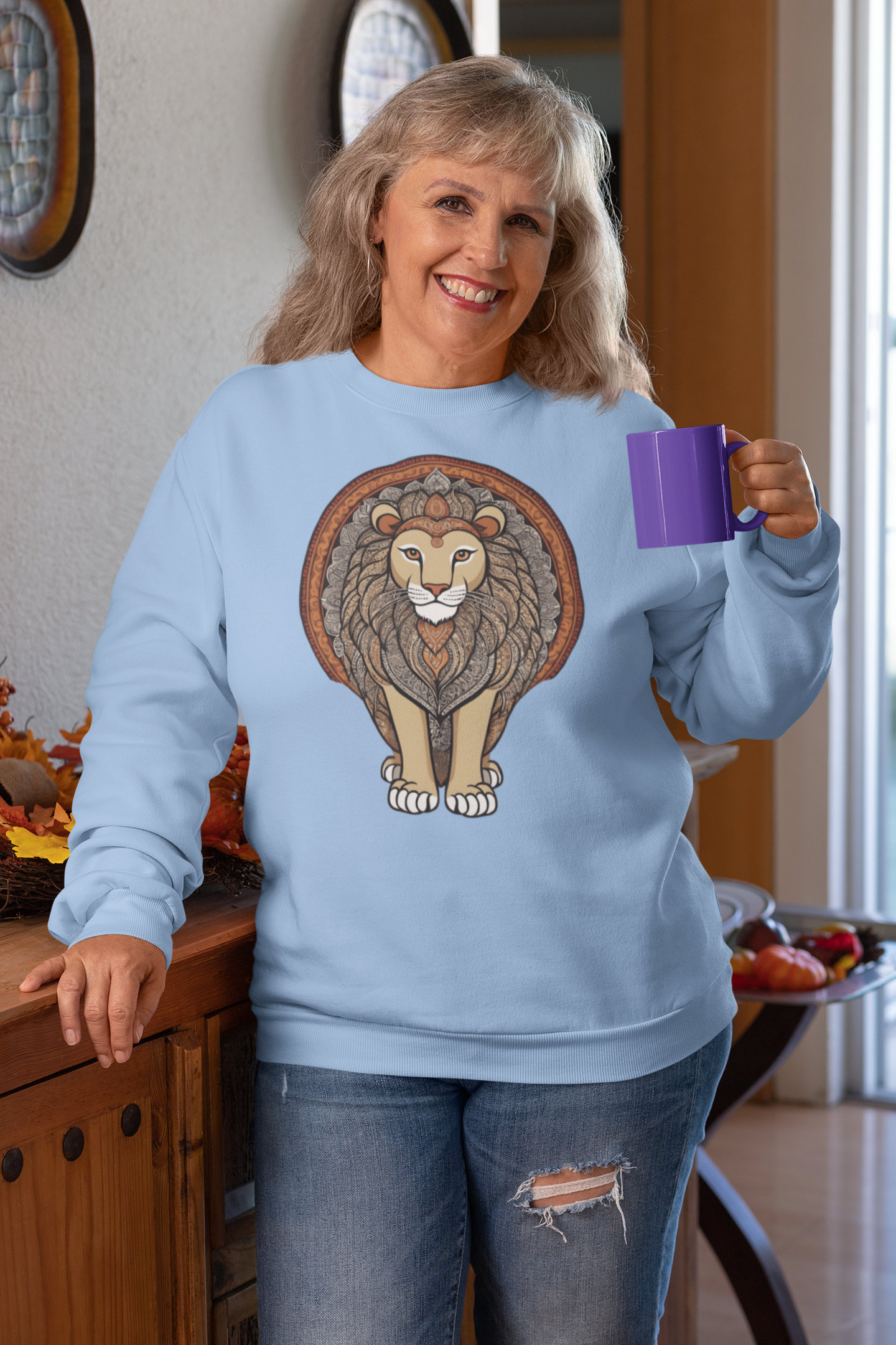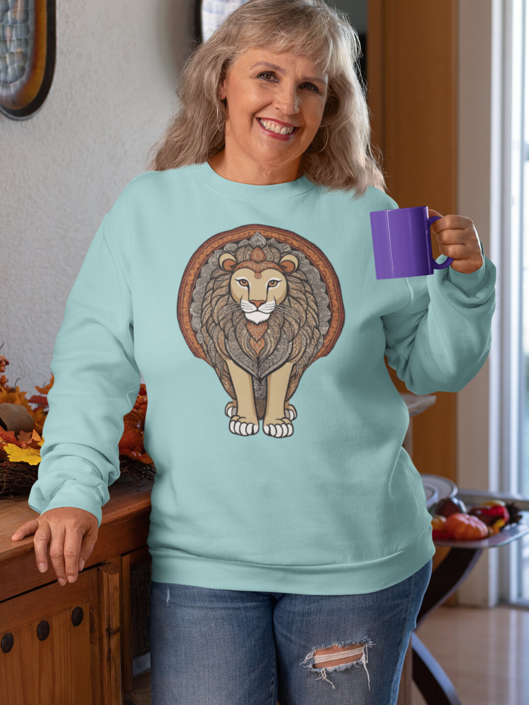 The lion—majestic, calm, and endlessly symbolic—anchors this piece in timelessness. Each curve and stroke nods to artisanship and depth, making it more than just apparel—it’s presence. The lighter colorways elevate the artwork, giving it space to breathe and be seen.