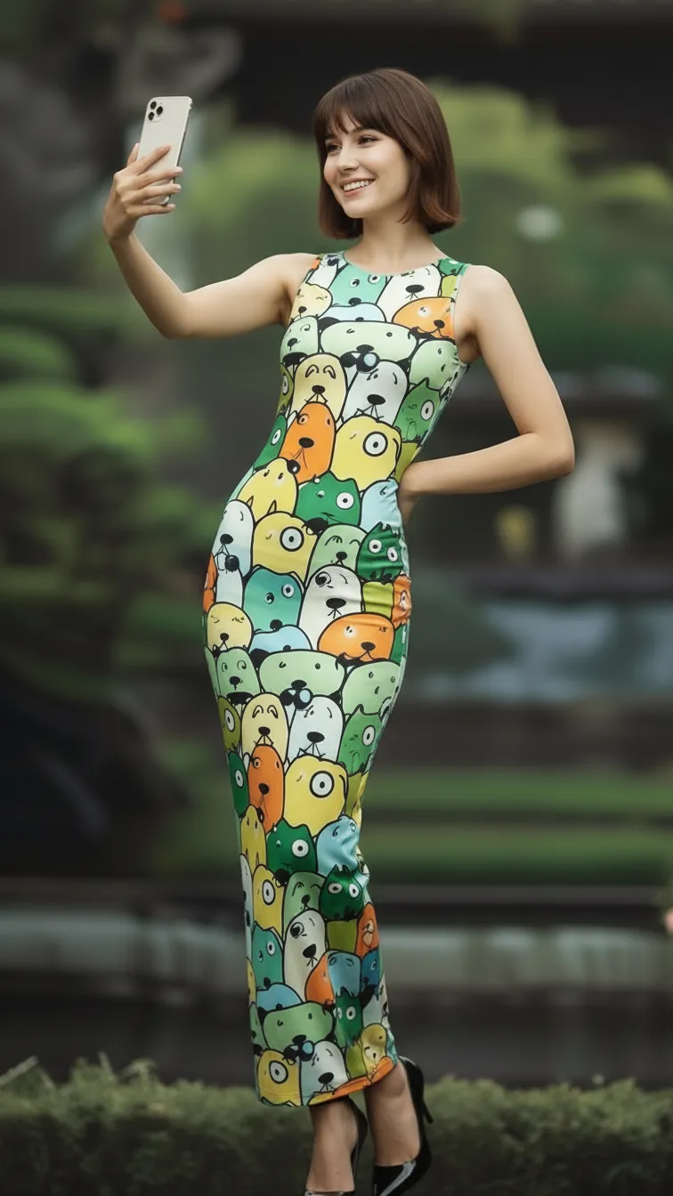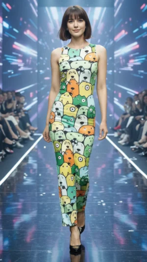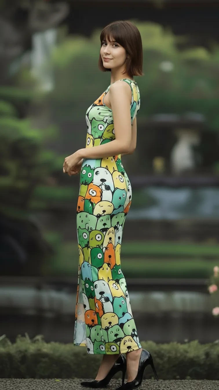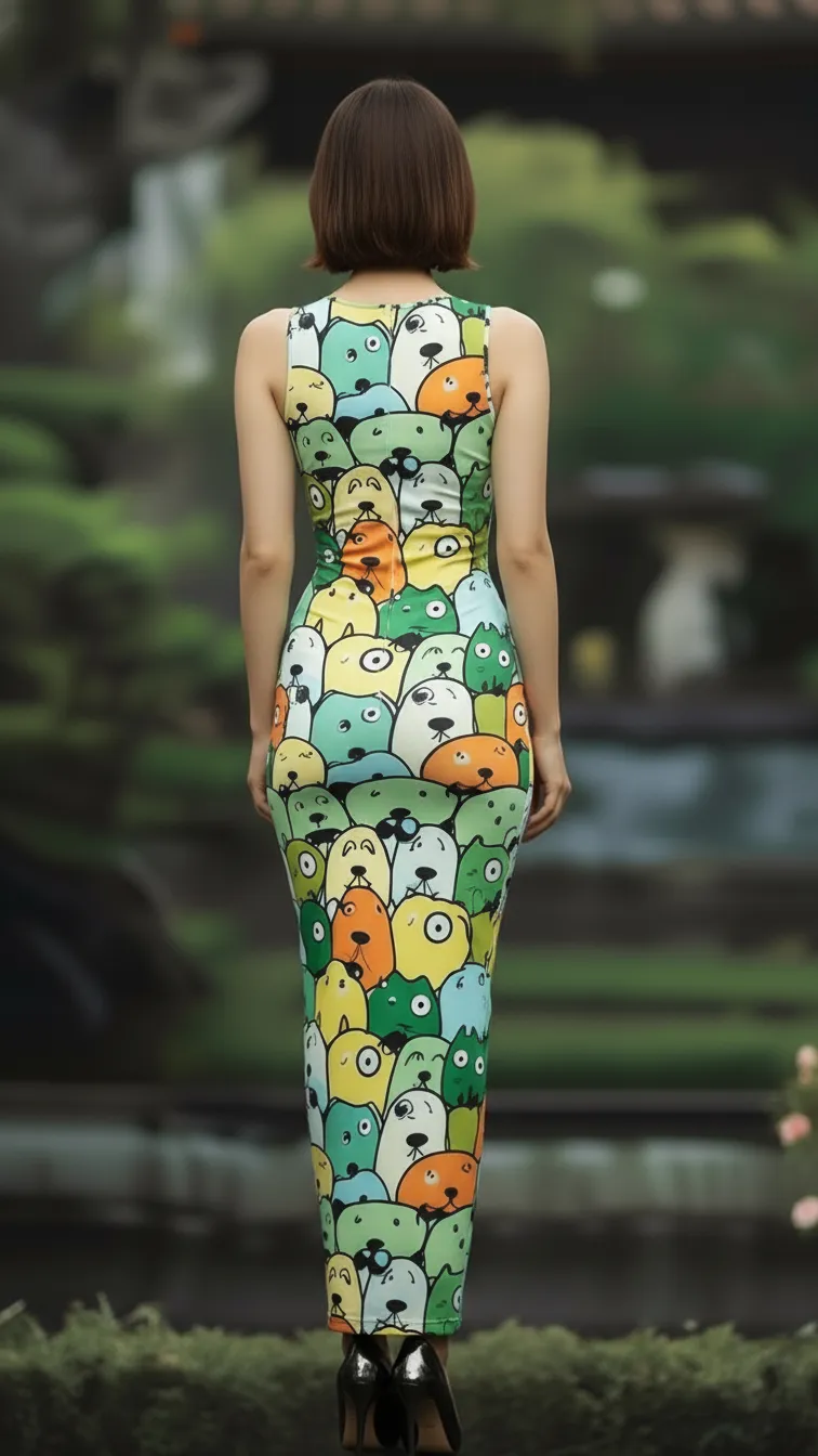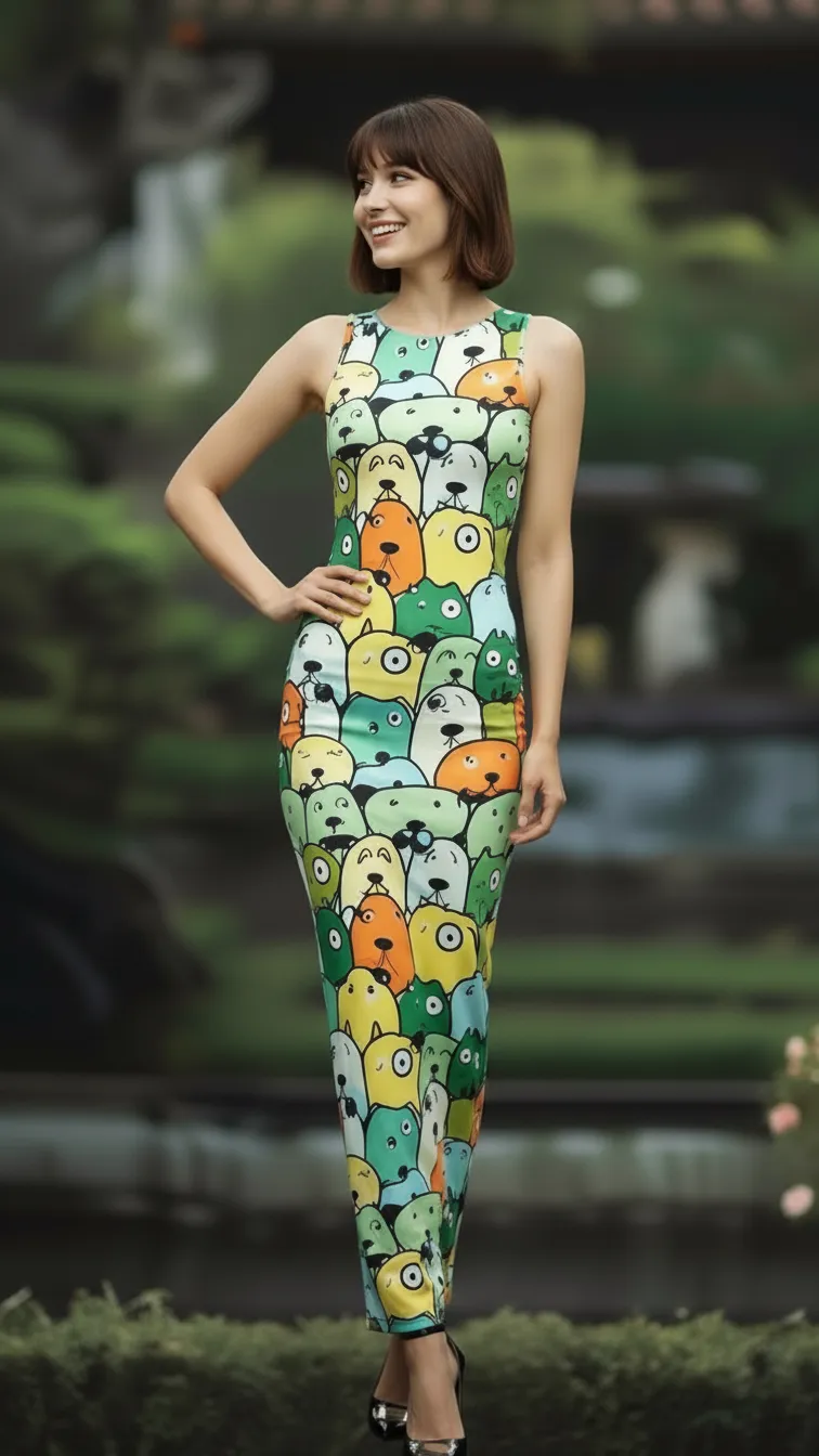 Show off your fun-loving personality with this adorable cartoon dog-print bodycon dress, a perfect blend of playful charm and flattering style. Featuring a crisp white base covered in colorful doodle-style dogs in shades of green, yellow, orange, and teal, this dress is a true conversation starter. The quirky print brings a lighthearted vibe, making it ideal for pet lovers and anyone who enjoys fashion with character. Designed with a curve-hugging silhouette, the stretchable fabric provides a comfortable, figure-flattering fit that moves with you. Its sleeveless cut and classic round neckline keep the design simple yet trendy, allowing the bold print to shine. Pair it with sneakers for a casual daytime look, or dress it up with heels and accessories for a unique evening outfit. Fun, stylish, and endlessly eye-catching, this bodycon dress is perfect for outings, parties, or simply showcasing your love for dogs in fashion.