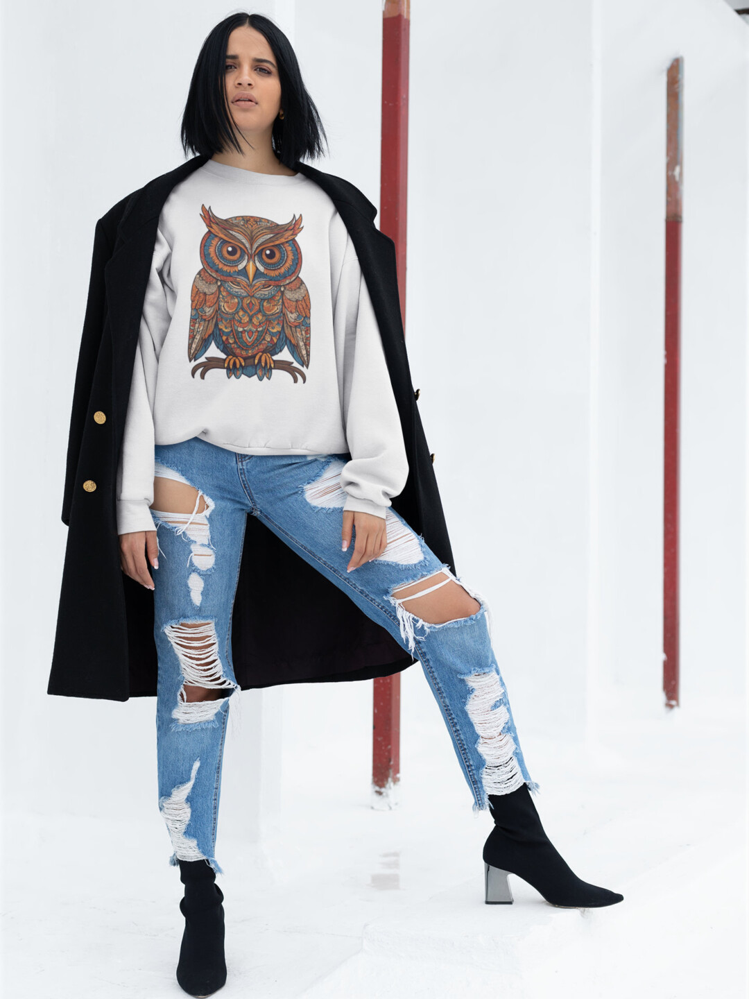 Elevate your wardrobe with the second chapter of our heritage series—the Intricate Owl Sweatshirt. A tribute to ancient Indian artistry, this design captures the wisdom and mystique of the owl in a stunning tapestry of ornate detail. It rests boldly on light, airy fabric tones that reflect clarity, calm, and quiet strength.